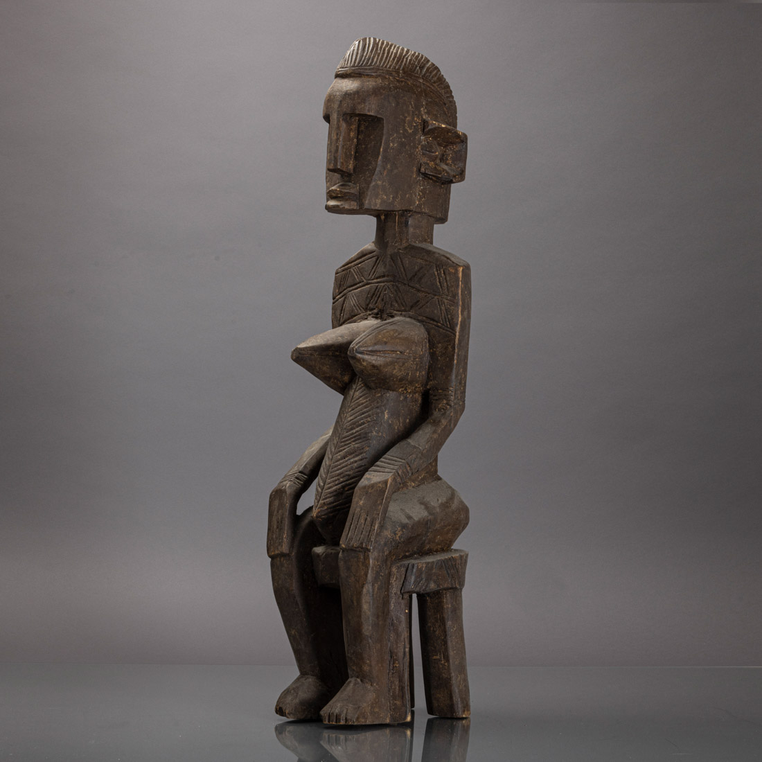 Escultura africana em madeira patinada. Pequenas falhas e defeitos.