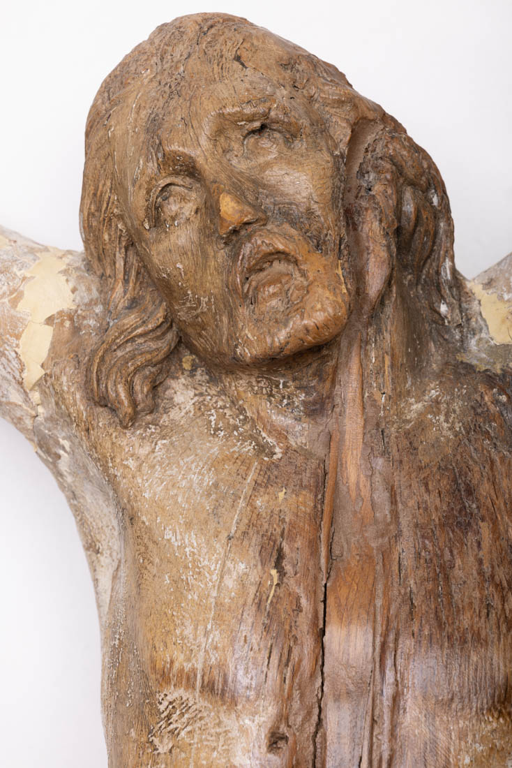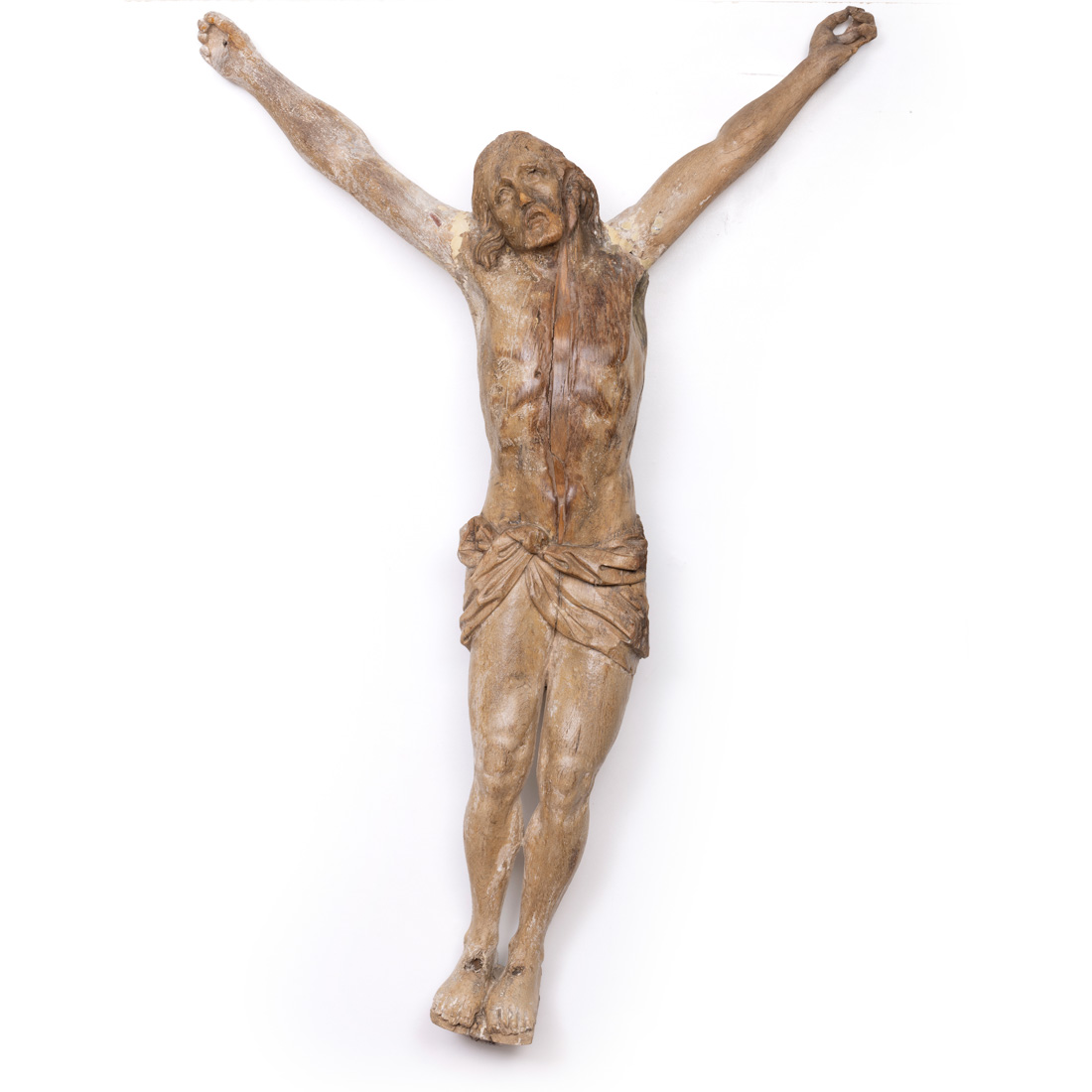 Escultura em madeira parcialmente pintada. Séc. XVIII/XIX. Falhas, defeitos, restauros e vestígios de xilófagos.