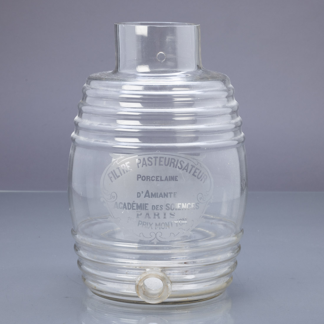 Em vidro moldado e gravado "Filtre Pasteurisateur - Académie des Sciences Paris 1º Prix Montyon". Falhas e defeitos.