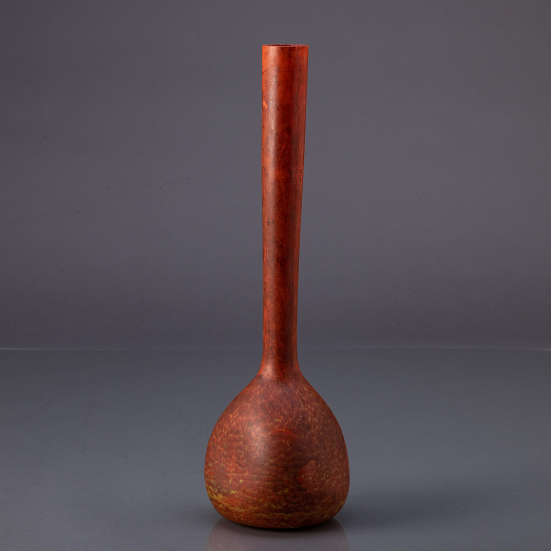 Em pasta de vidro em tons de vermelho e amarelo. Europa, Séc. XX. Sinais de uso.