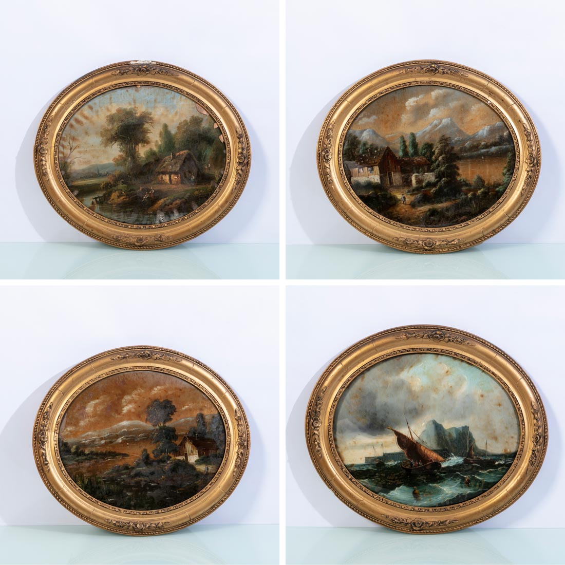 Pinturas sobre tela colada sob vidro. Europa, Séc. XIX/XX. Pequenos defeitos, manchas.