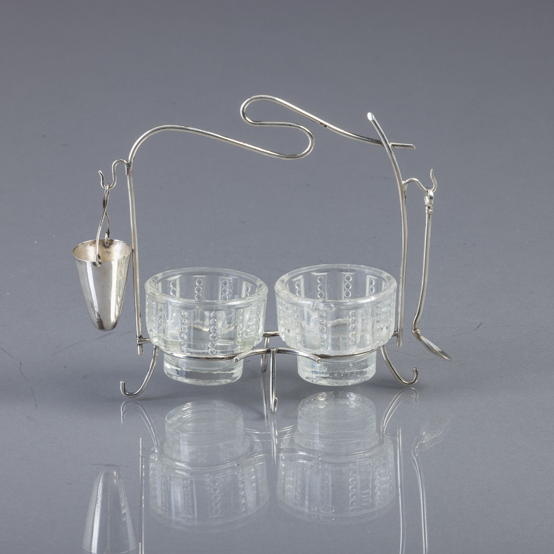 Em prata portuguesa contraste javali (1887-1937) de 833, recipientes em vidro. Sinais de uso.