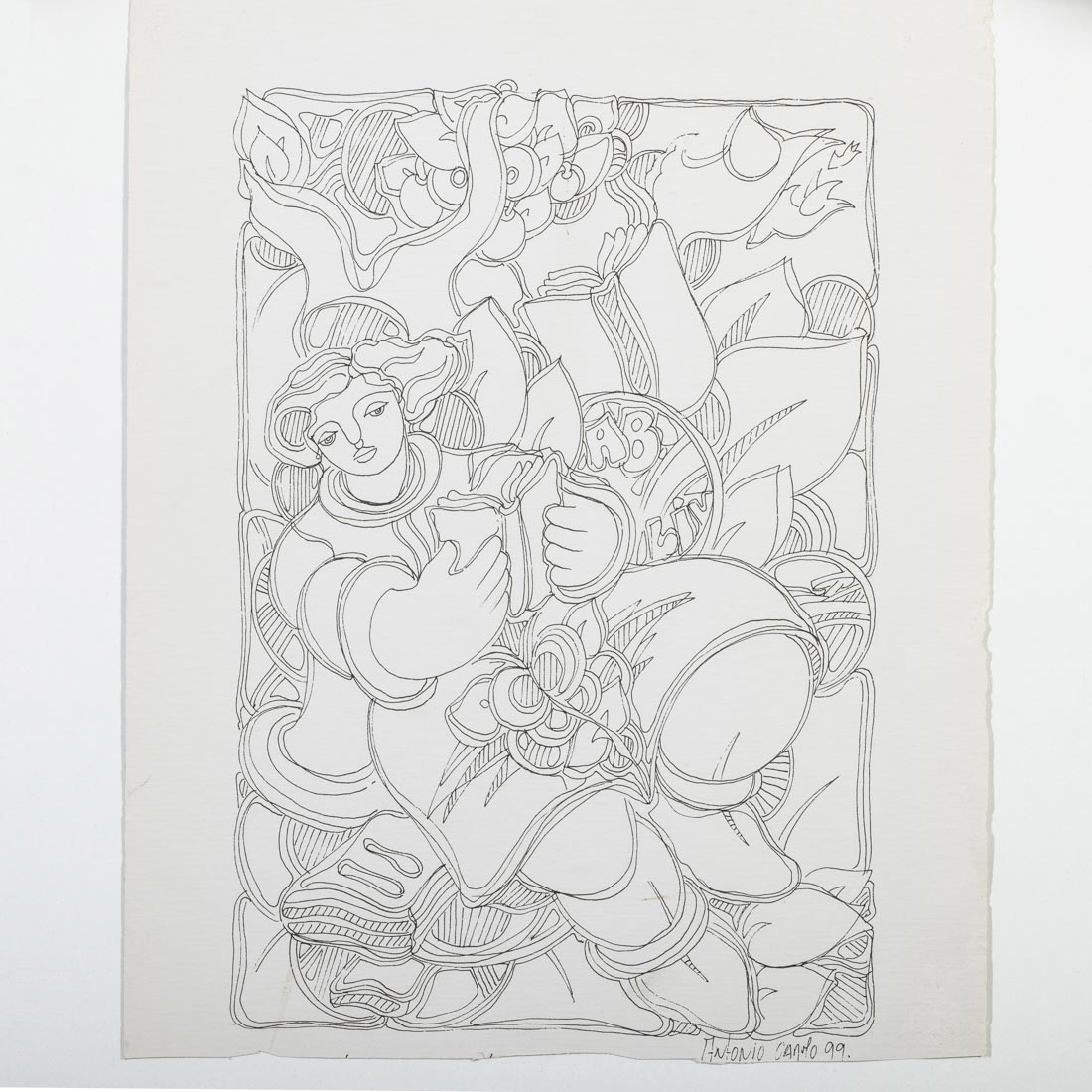 Desenho a tinta da China sobre papel, assinado e datado de 1999. Não emoldurado. Pequenos defeitos.