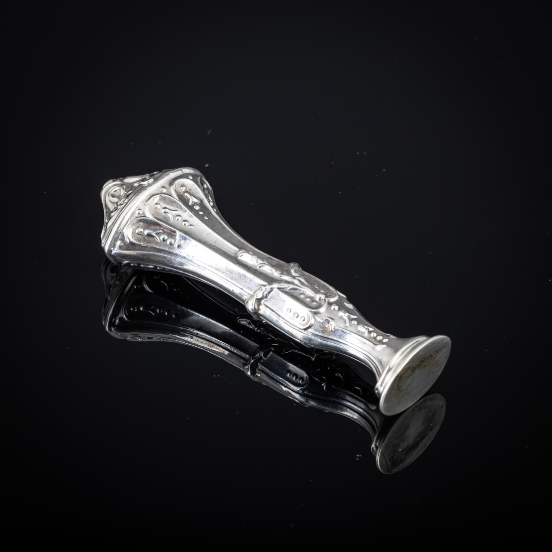 Em prata portuguesa contraste javali (1887-1937) de 833, decoração relevada com elementos vegetalistas. Sinais de uso.