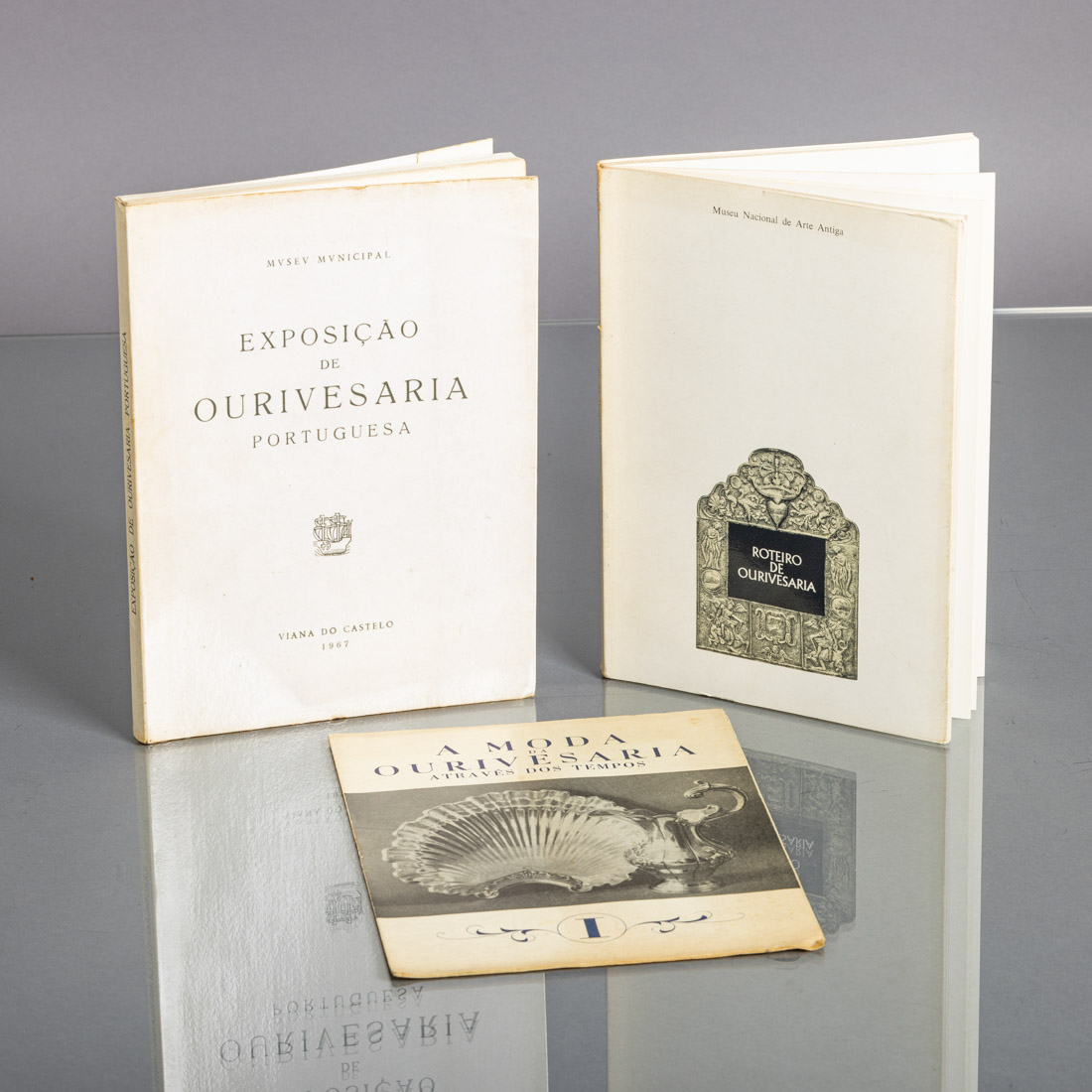 "Roteiro de ourivesaria" Museu Nacional de arte antiga, Lisboa 1975, "A moda da ourivesaria através dos tempos" e "Exposição de ourivesaria portuguesa" Museu municipal, Viana do Castelo 1967. Sinais de uso e pequenos defeitos.