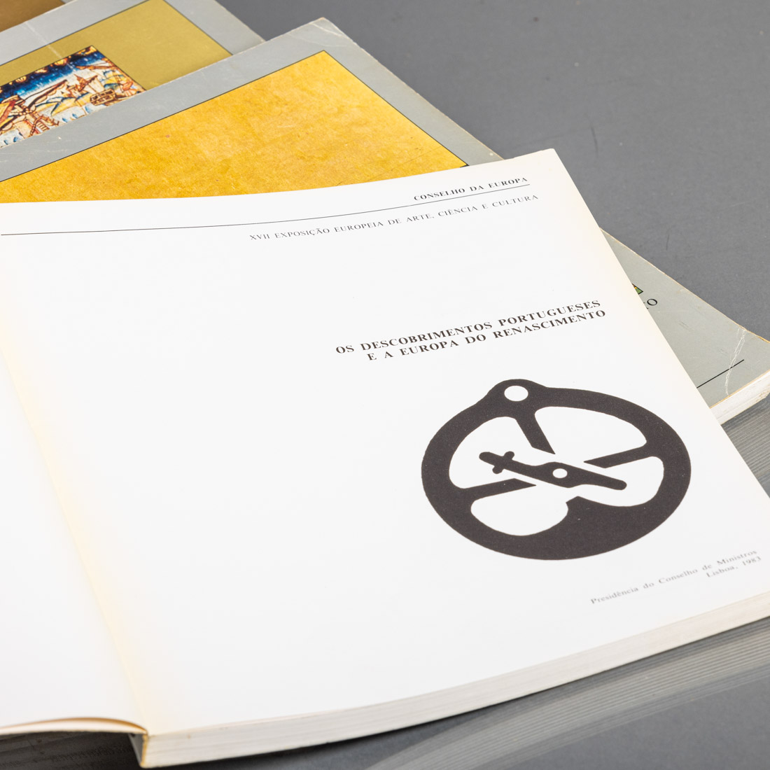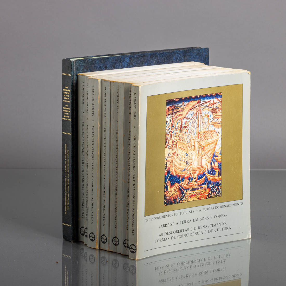 Em oito volumes. Os descobrimentos portugueses e a Europa do renascimento, catálogos profusamente ilustrados. Lisboa 1983. Sinais de uso e pequenos defeitos.