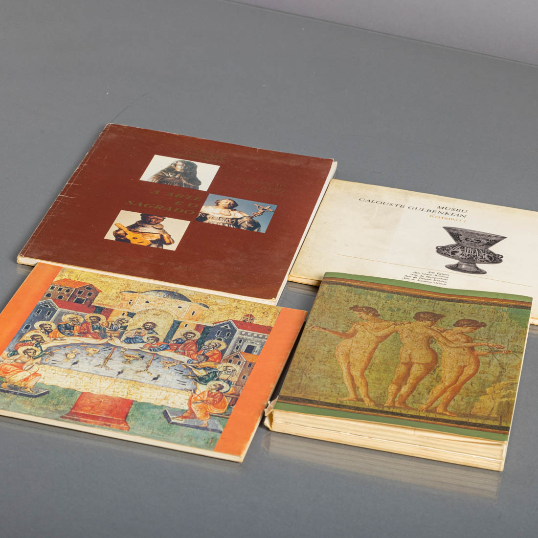 "Pompeia vida e arte nas cidades do vesúvio", "Museu Calouste Gulbenkian roteiro I", "1000 anos de ícones Búlgaros" e "A arte e o sagrado - Colecção João Marino". Em brochura. Pequenas falhas e defeitos.