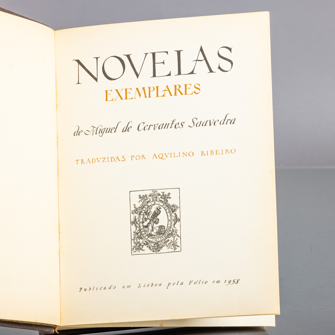 De Miguel de Cervantes Saavedra. Traduzidas por Aquilino Ribeiro. Publicado em Lisboa pela Fólio em 1958. Exemplar nº182 dos 1650 que constituem a tiragem desta edição com chancela do tradutor. Encadernação do editor inteira em pele com ferros a ouro. Sinais de uso.
