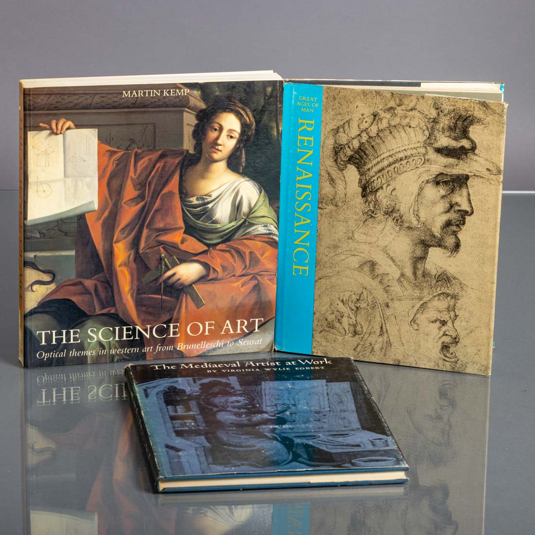 "The medíaevel Artist at work" por Virginia Wylies Egbert, "Great Ages of Man Renaissance" por John R. Hale e "The science od art" de Martin Kemp. Profusamente ilustrados. Sinais de uso e pequenos defeitos nas sobre capas.