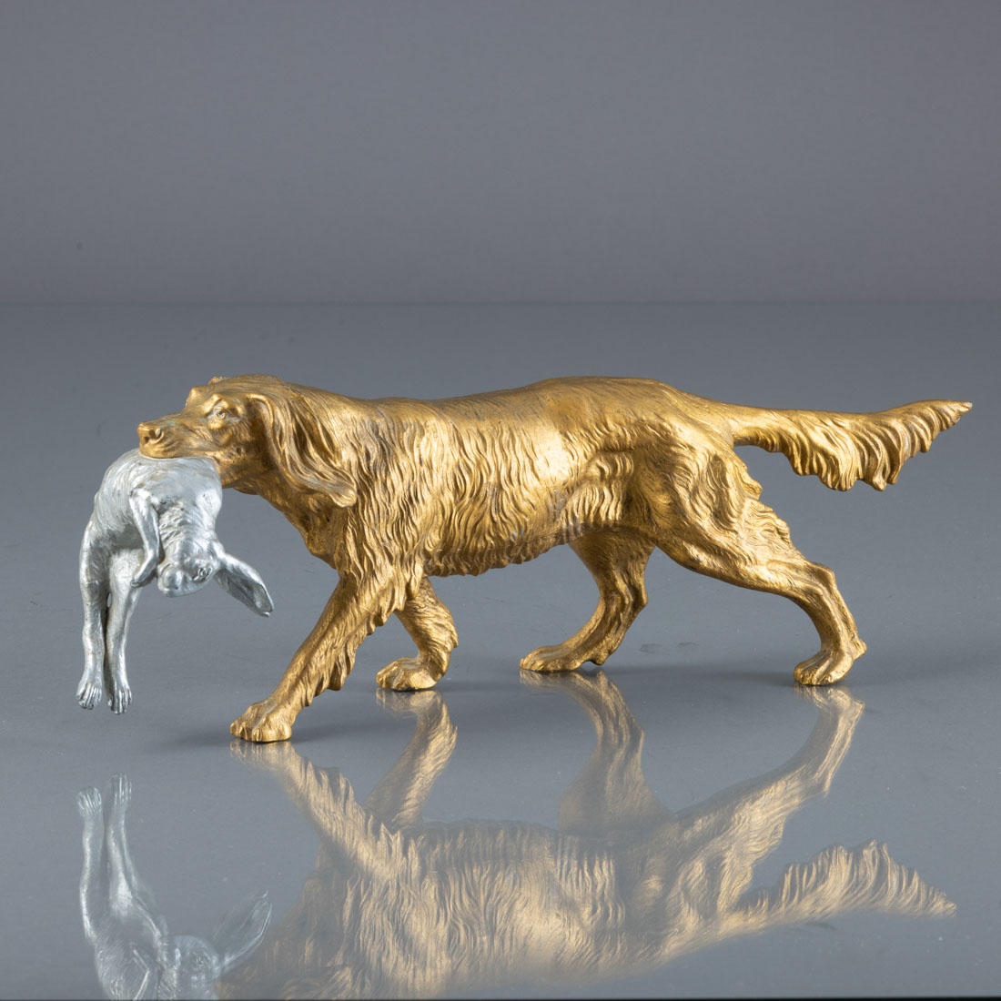 Escultura em bronze de arte dourado e prateado.. Sinais de uso.