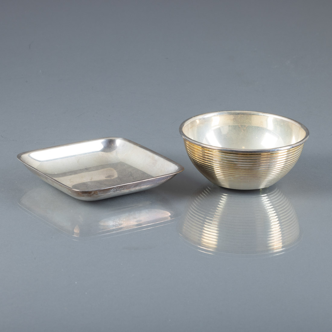 Em casquinha, aneleira marcada Topázio, com publicidade no fundo, taça marcada Silver Field. Sinais de uso.