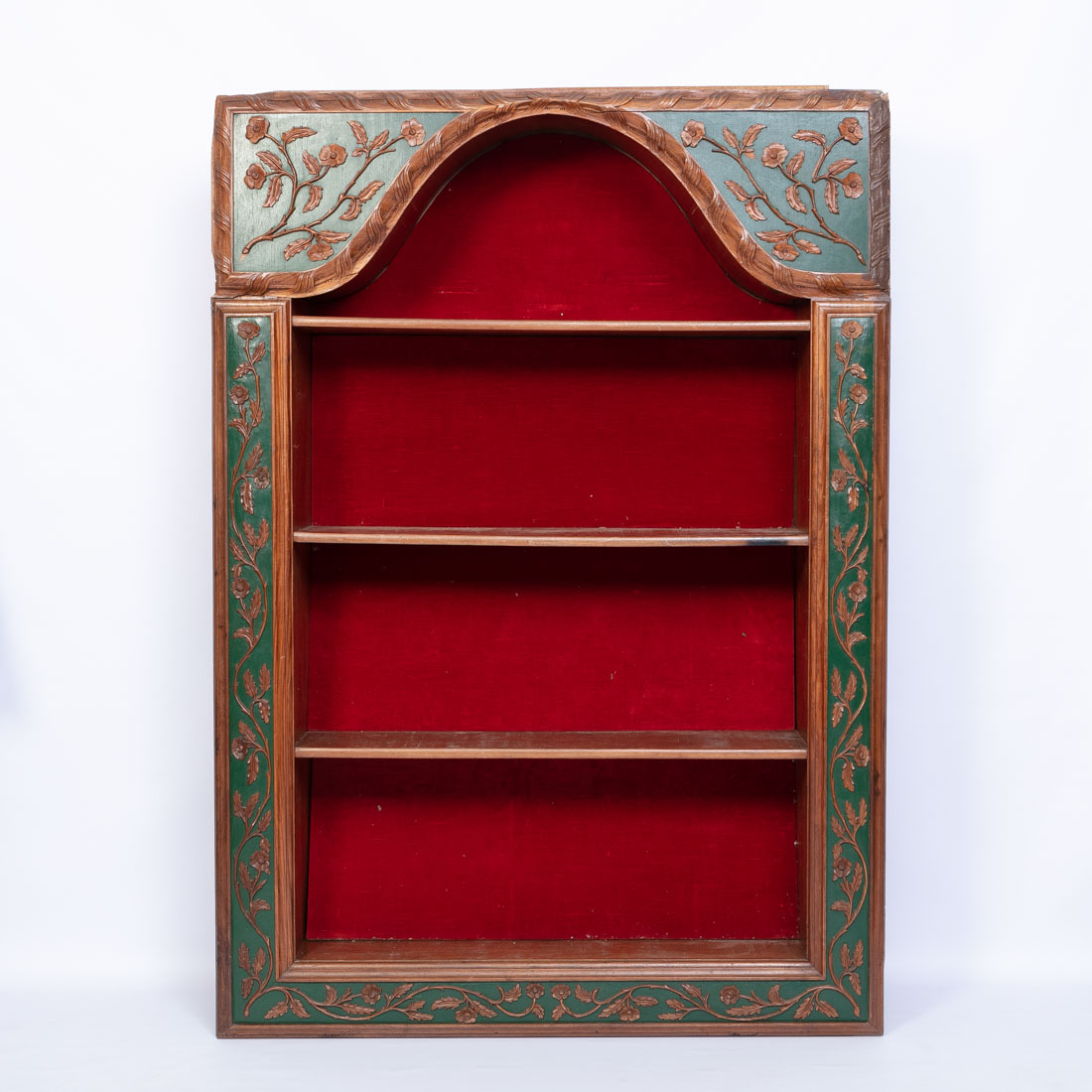 Em diferentes madeiras, parcialmente pintada com aplicações de talha "flores". Pequenas falhas e defeitos.