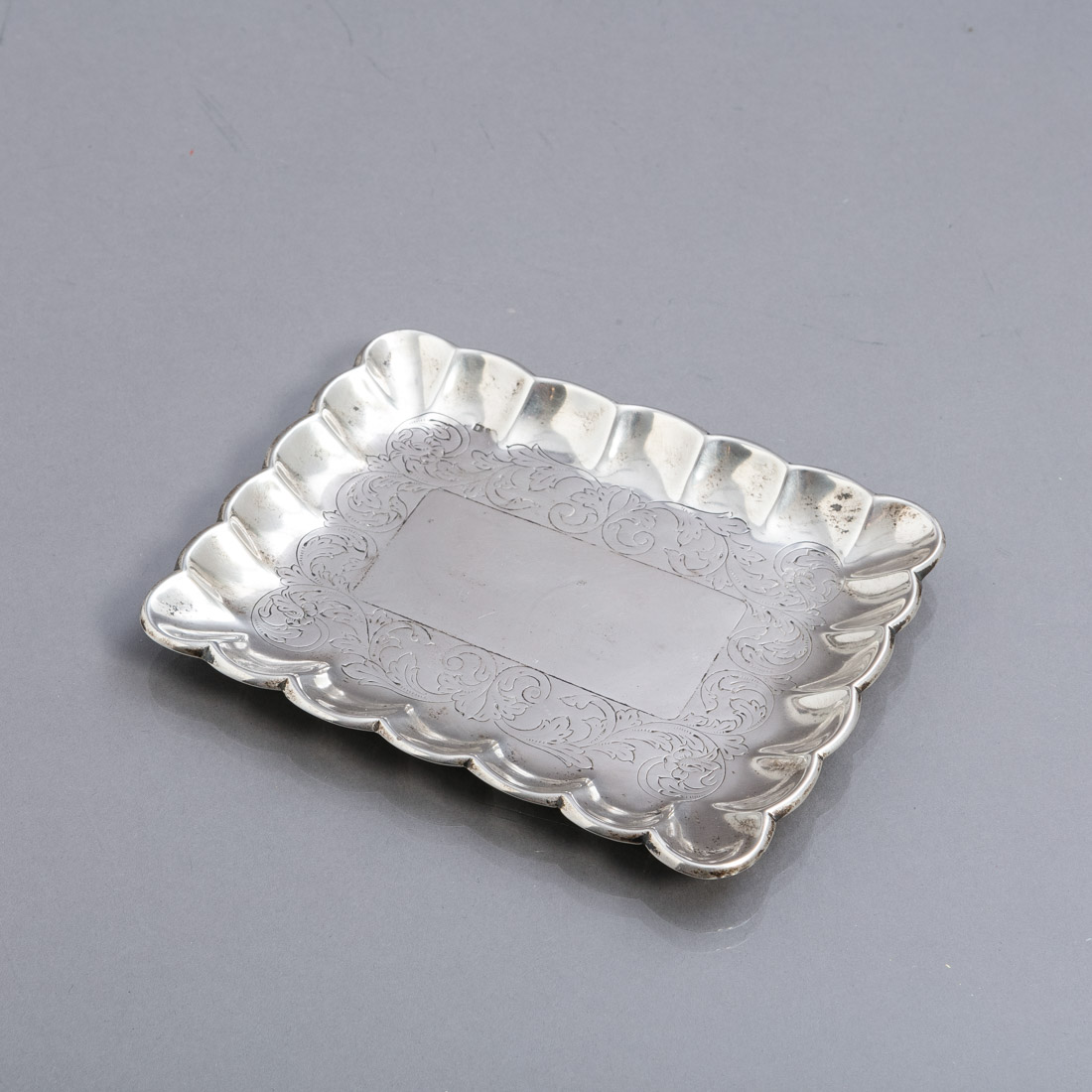 Em prata portuguesa contraste águia (1938-1984) de 833, de formato retangular, decoração com gravados vegetalistas. Sinais de uso.