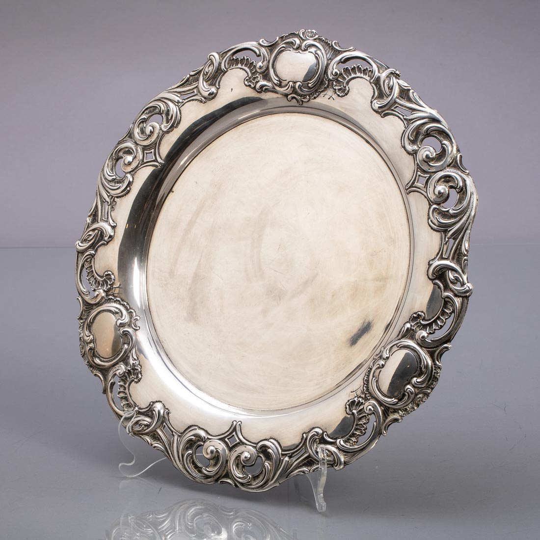 Em prata portuguesa contraste javali (1887-1937) de 833, decoração lisa, aba relevada e recortada com enrolamentos