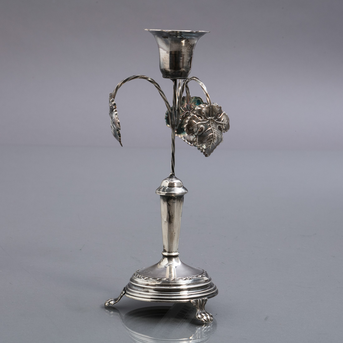 Em prata portuguesa contraste javali (1887-1937) de 833, decoração relevada, base redonda e pés de garra.