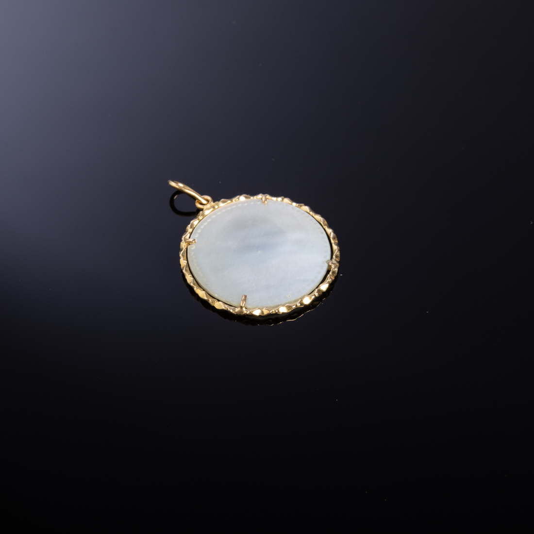 Aro em ouro de 19,2Kt., e madrepérola. Sem marcas, ao abrigo do D/L n.º 120/2017. Sinais de uso.