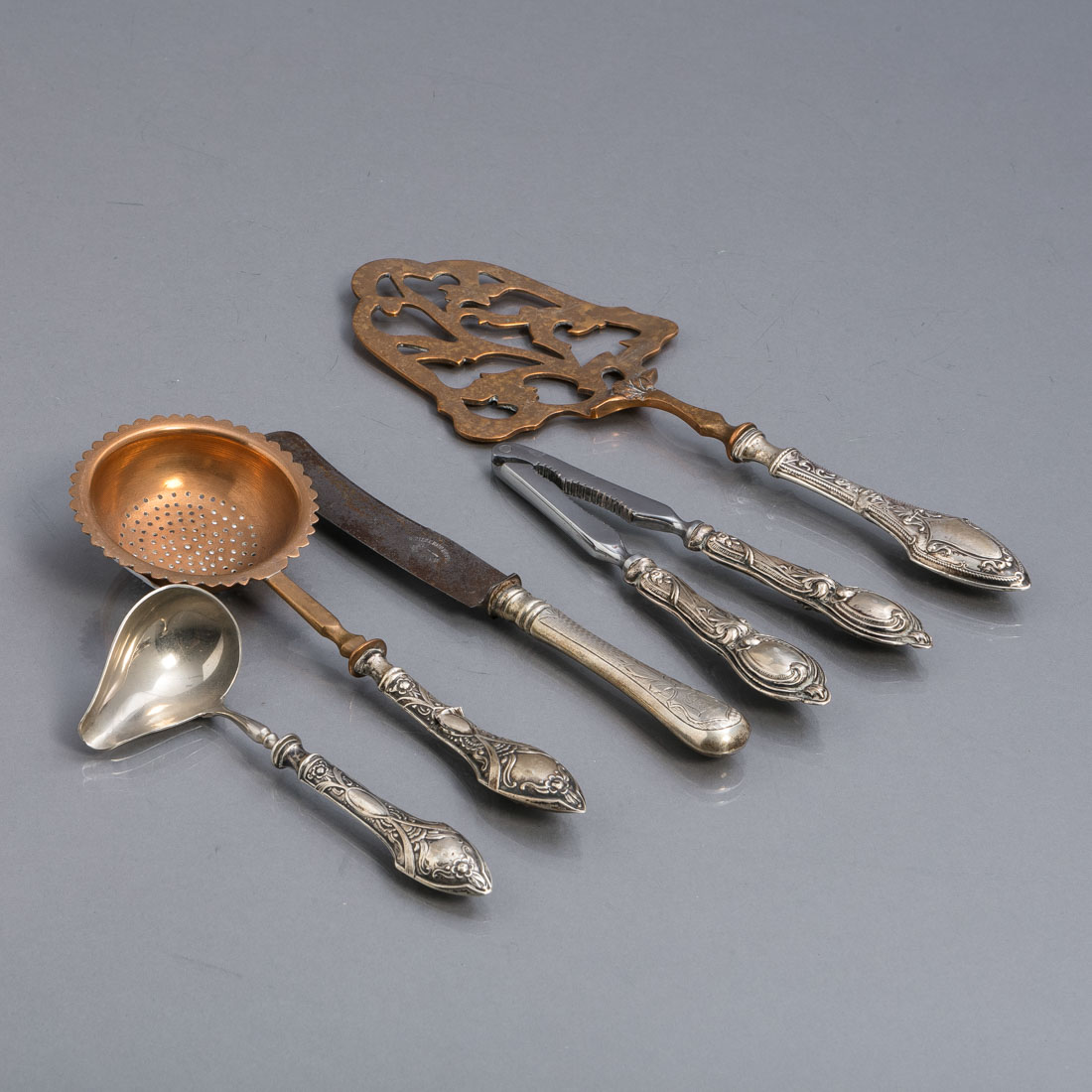 466. ESPÁTULA, QUEBRA-NOZES, COLHER DE MOLHOS, FACA E COADOR
