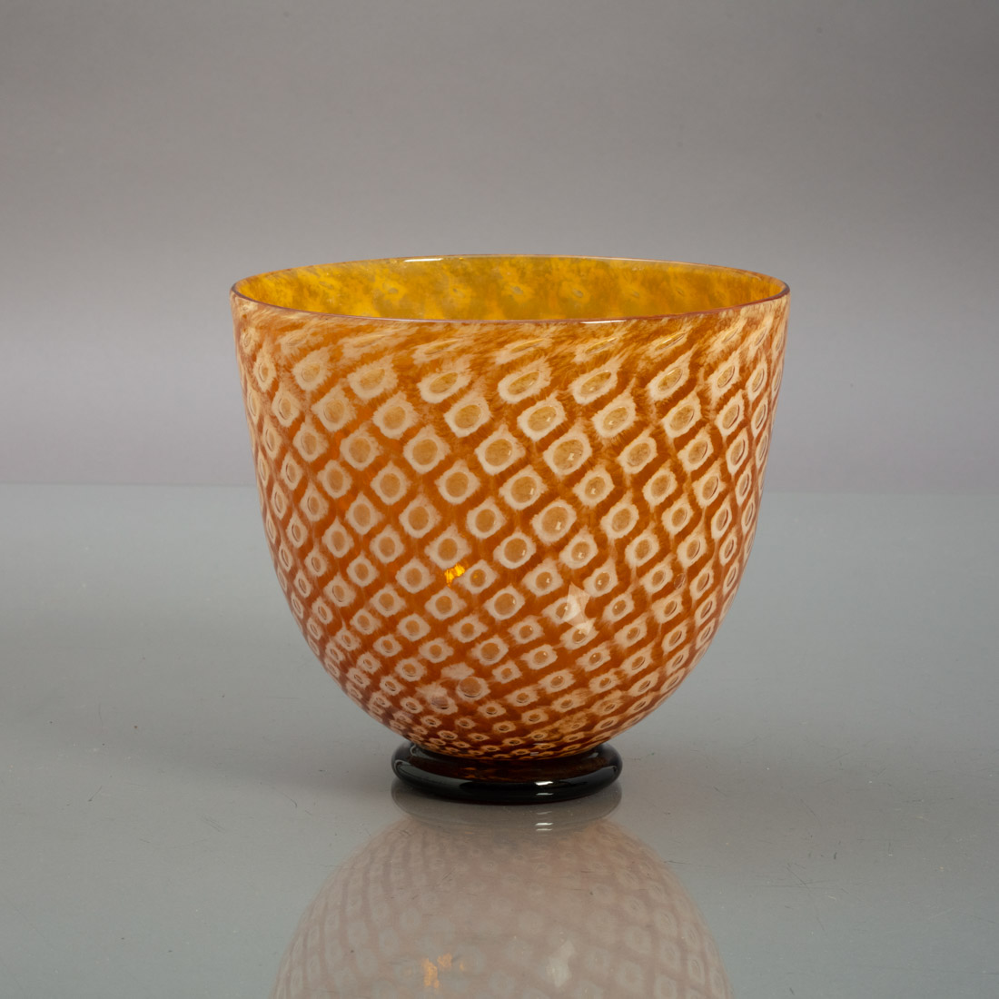 Em vidro colorido em tons de âmbar, possivelmente de Murano. Sinais de uso.