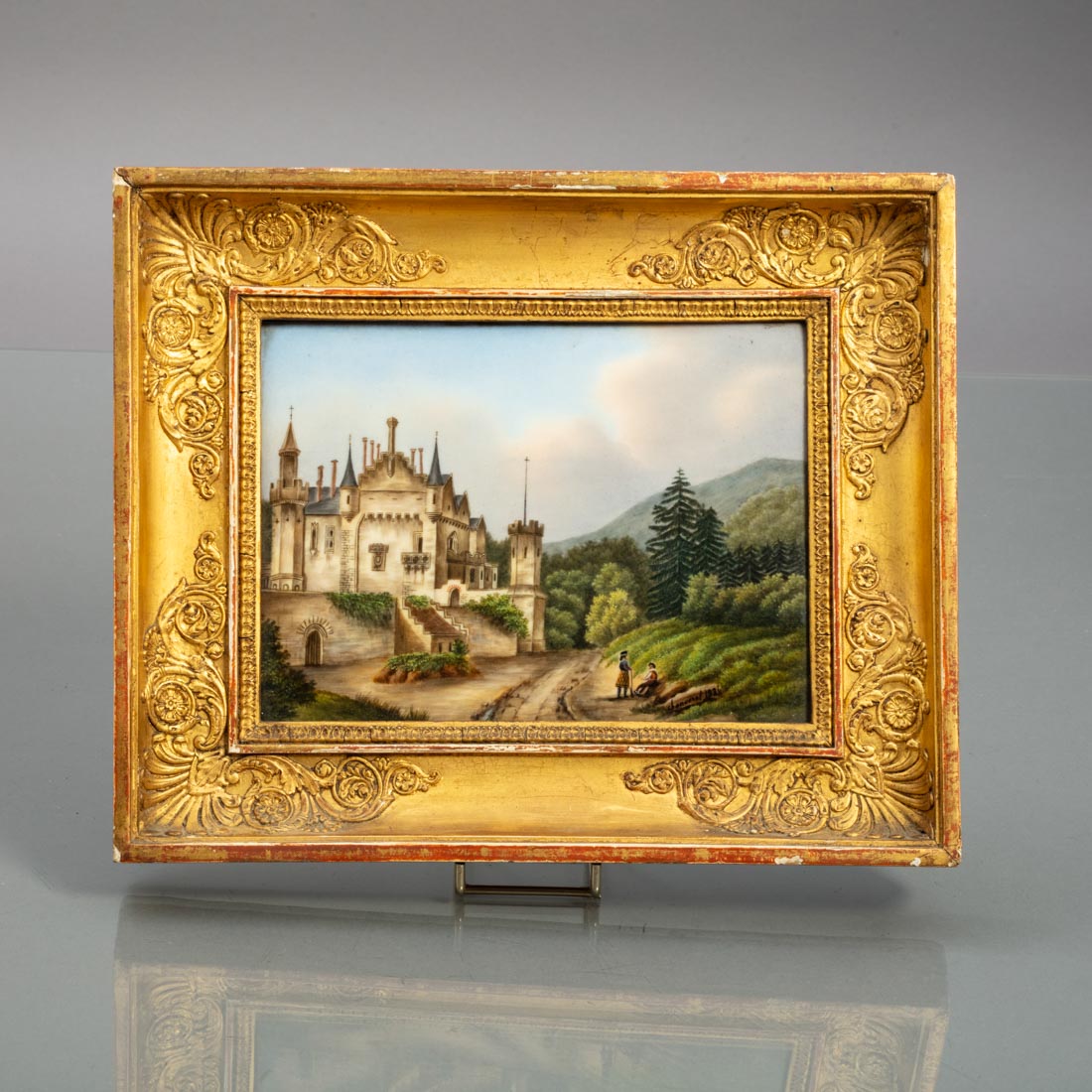 Pintura sobre placa de porcelana, assinado Chanceral? e datado de 1834. No verso curiosa inscrição.