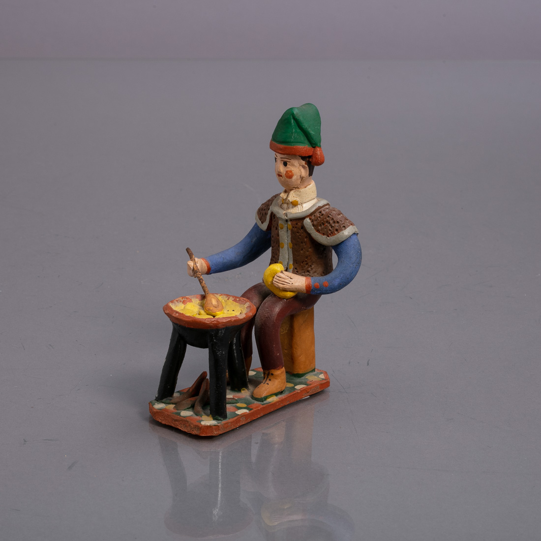 Escultura em barro de Estremoz, decoração policromada. Sinais de uso.