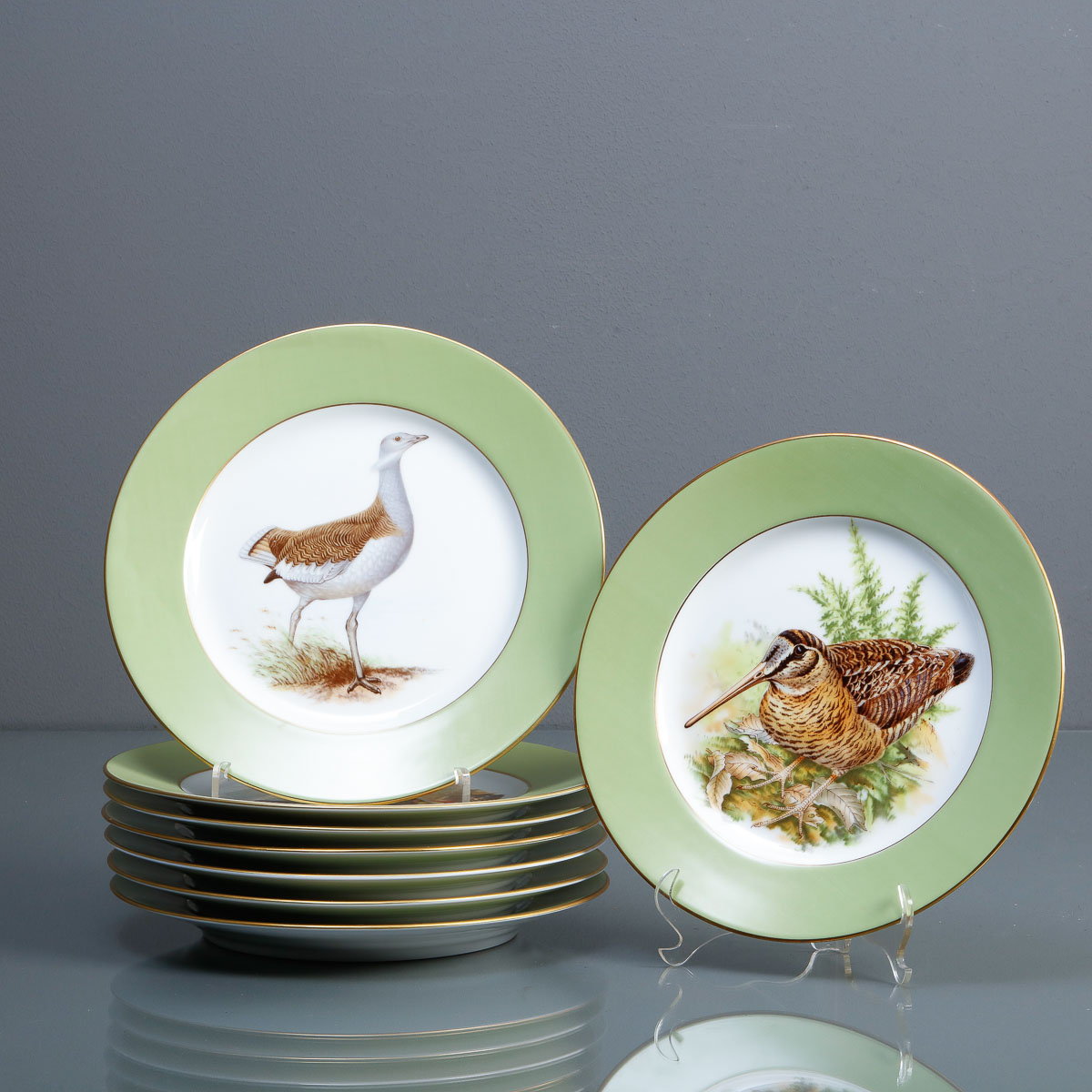 163. CONJUNTO DE OITO PRATOS DA VISTA ALEGRE "AVES DE CAÇA"