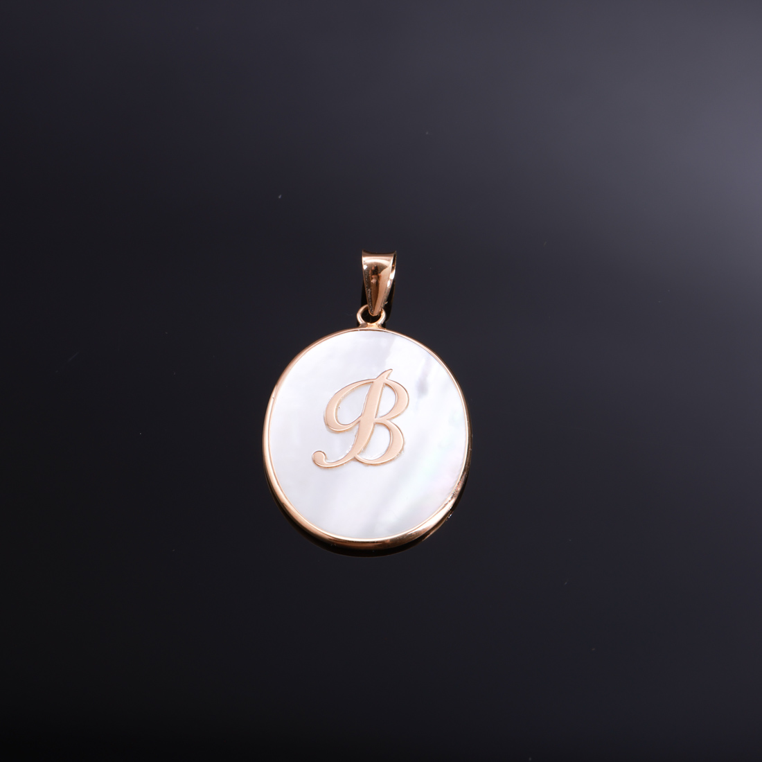 Aro em ouro de 19.2Kt., placa oval de madrepérola letra "B". Sinais de uso.