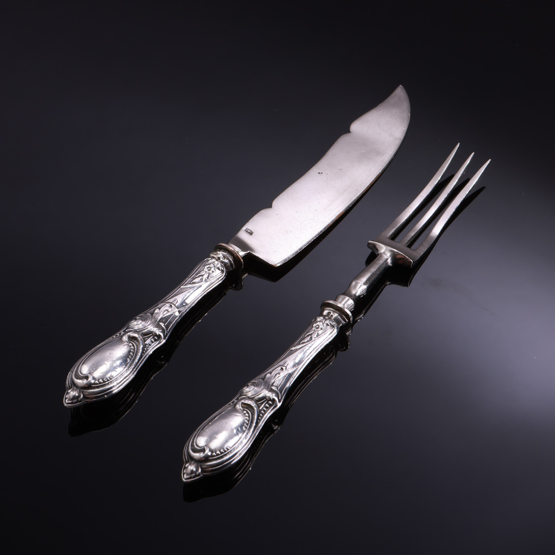 Cabos em prata portuguesa contraste águia (1938-1984) de 833, decoração relevada. Leves amolgadelas.