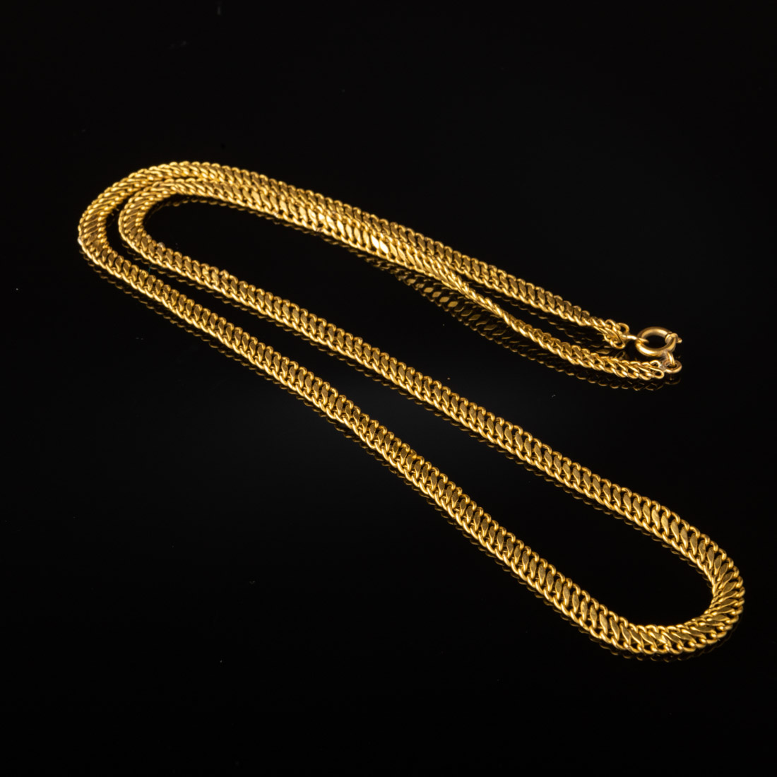 Em ouro de 19,2Kt., de malha batida, marcas ilegíveis, ao abrigo do Decreto-Lei n.º 120/2017. Pequenas amolgadelas e pequena soldadura.