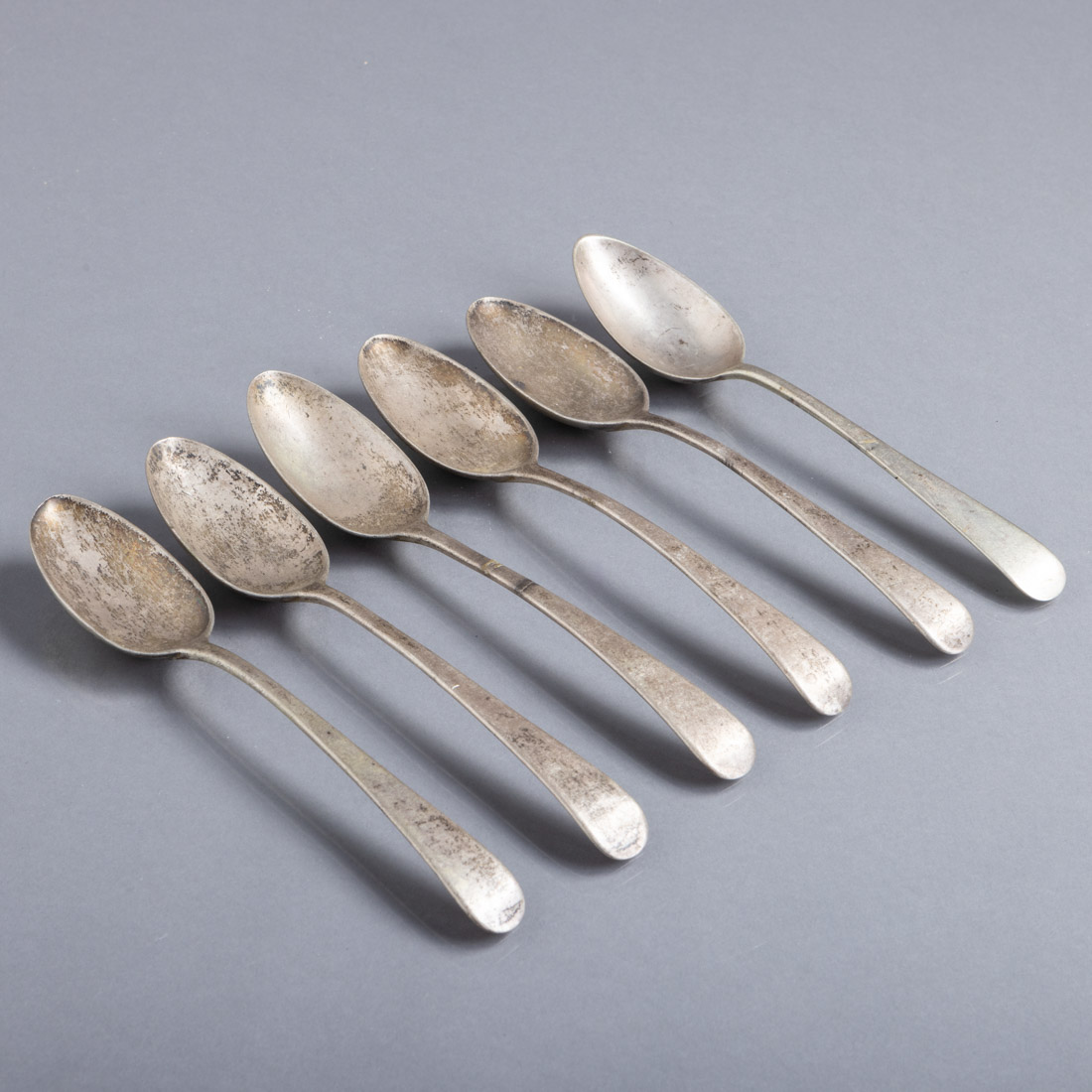 Em prata portuguesa do Séc. XIX, com diferentes marcas de ourives e prateiros do Porto e Lisboa, decoração lisa. Desgaste.