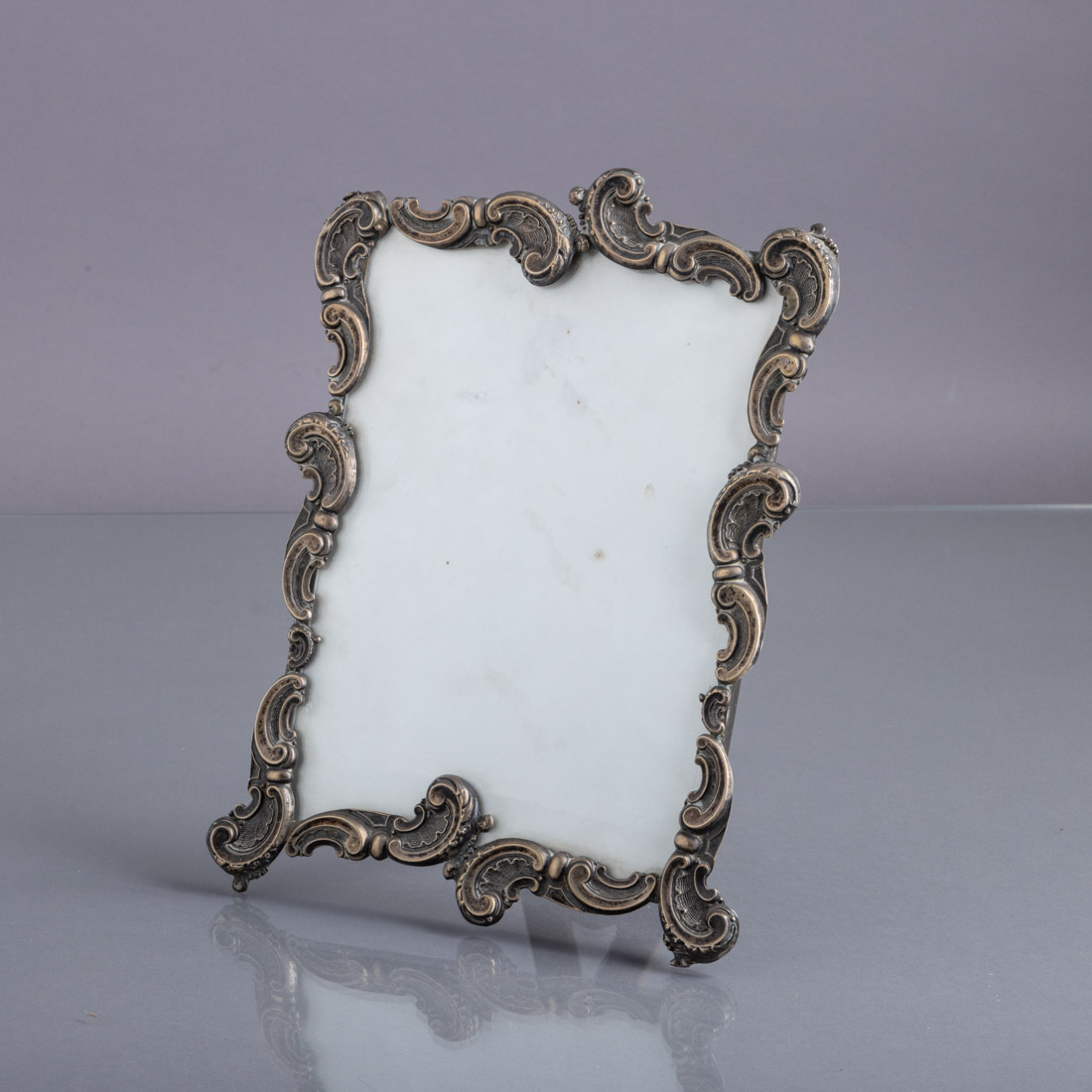 Moldura em prata portuguesa contraste águia (1938-1984) de 833, decoração relevada com enrolamentos. Pequenas falhas, sinais de uso.