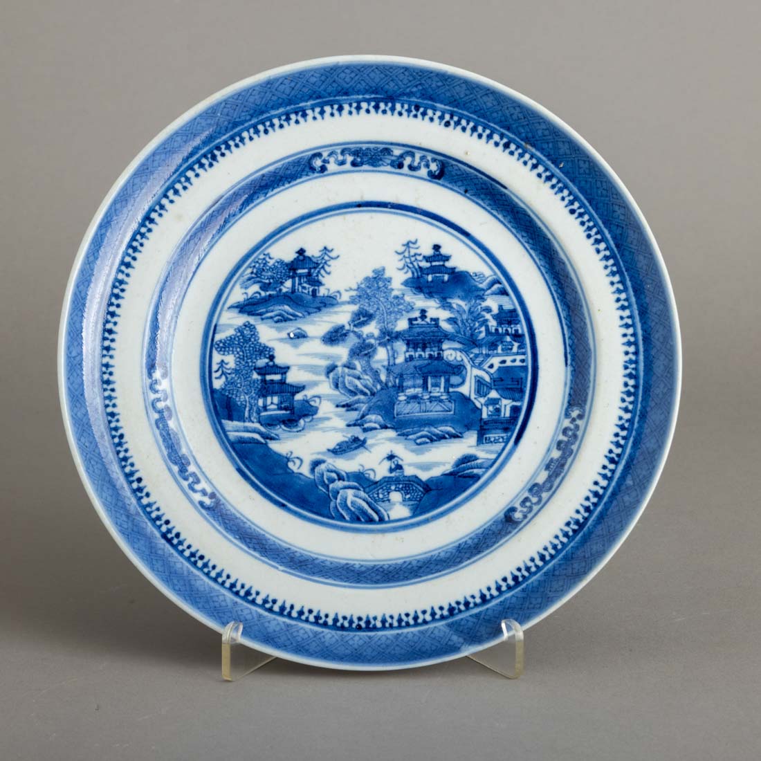 Em porcelana da China, Séc. XIX/XX, decoração a azul "Cantão". Sinais de uso.