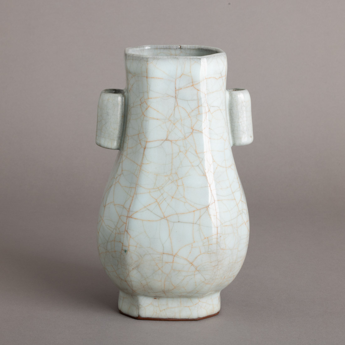 Em cerâmica da chinesa, decoração craquelé monocroma a verde celadon, pegas relevadas. Sinais de uso.