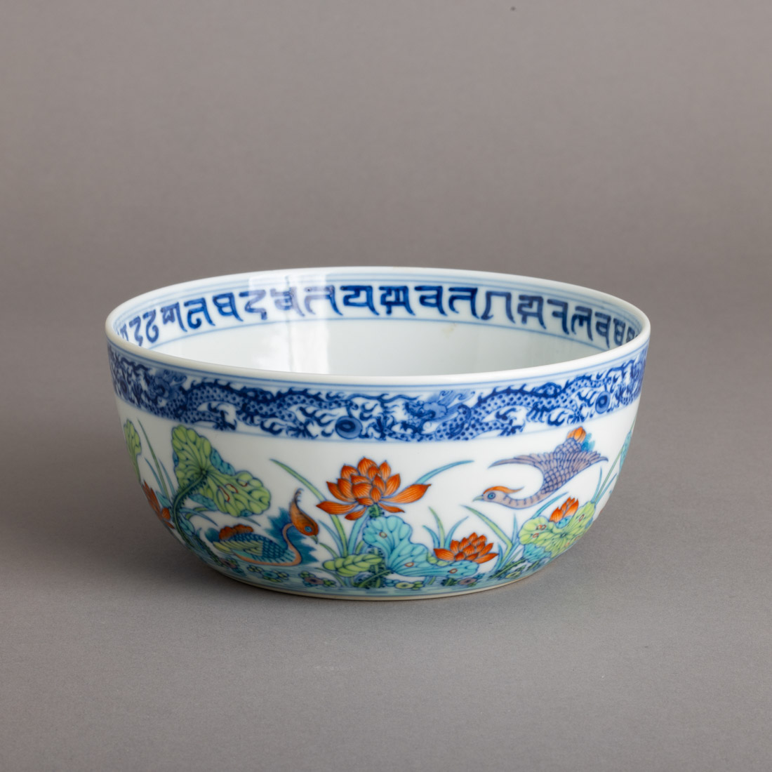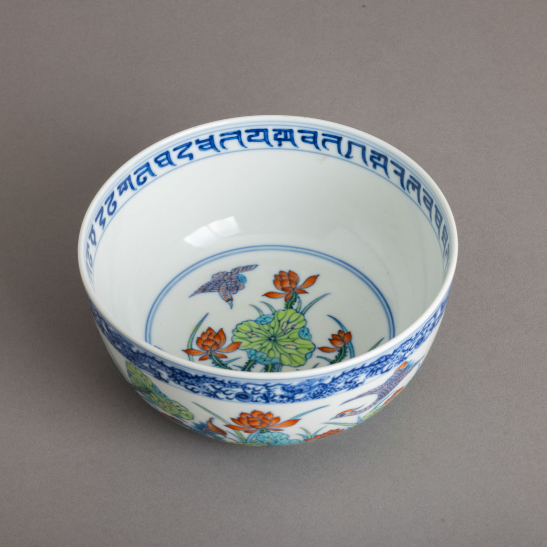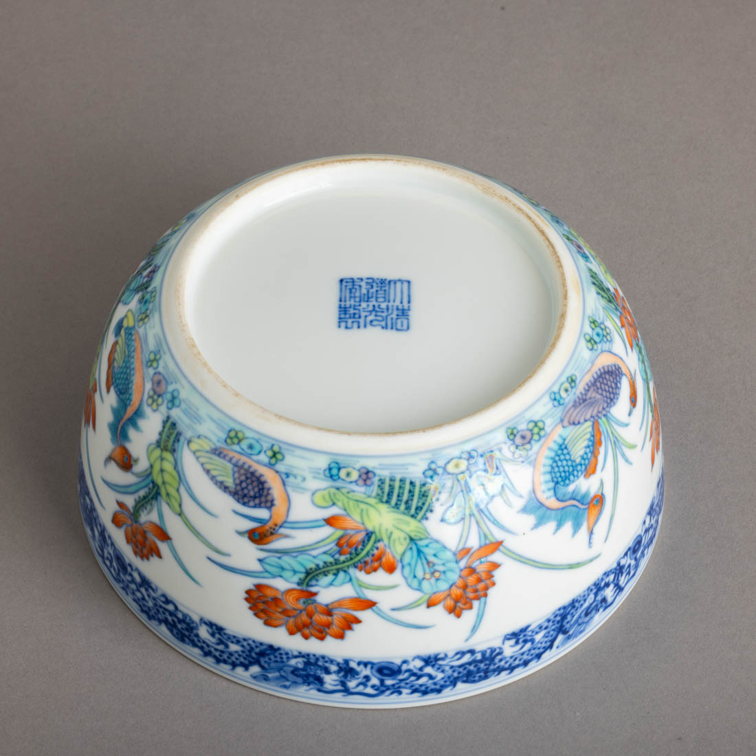 Em porcelana da China, decoração policromada com elementos vegetalistas e animais. Marcada. Sinais de uso.