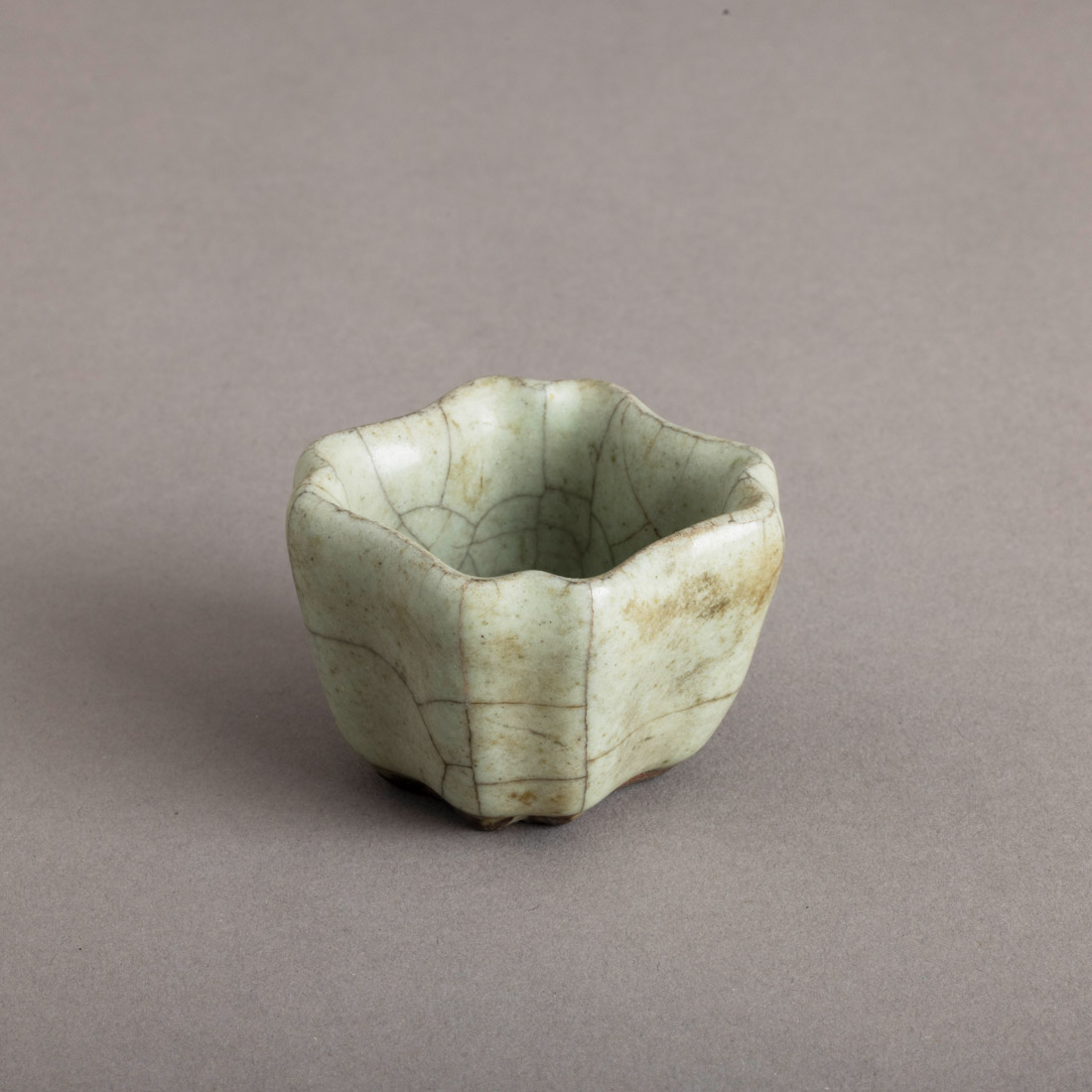 Em cerâmica chinesa, decoração monocroma "Celadon" craquelé. Sinais de uso.