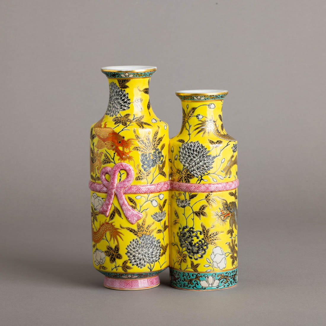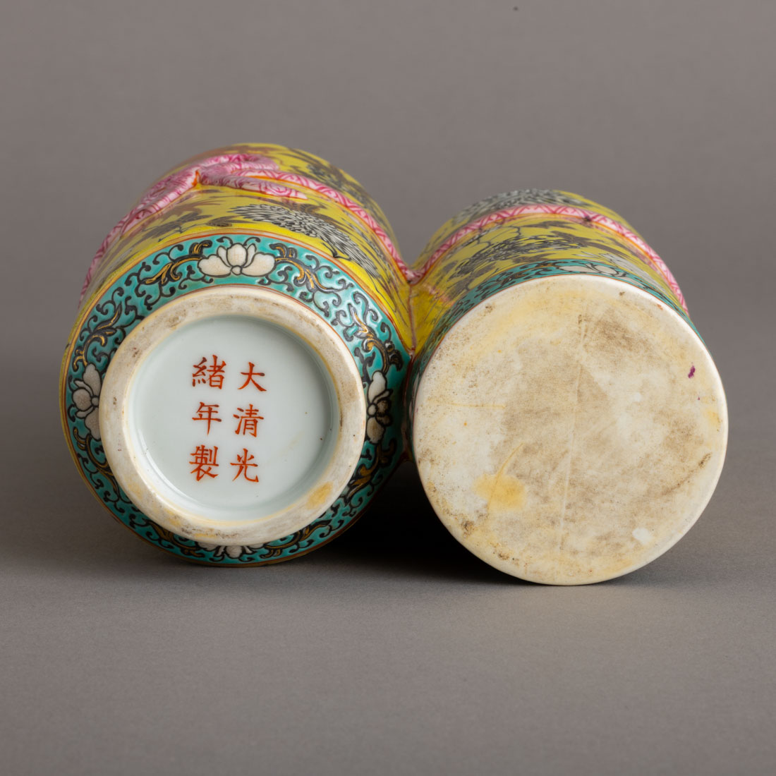 Em porcelana da China, decoração relevada, policromada e dourada "flores e dragões". Marcada. Sinais de uso.