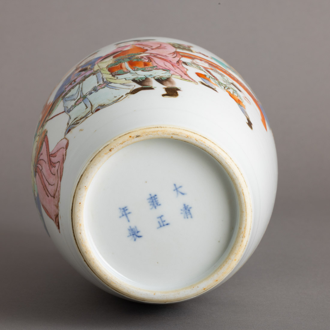 Em porcelana da China, decoração policromada "cena com figuras da nobreza". Marcada. Sinais de uso.