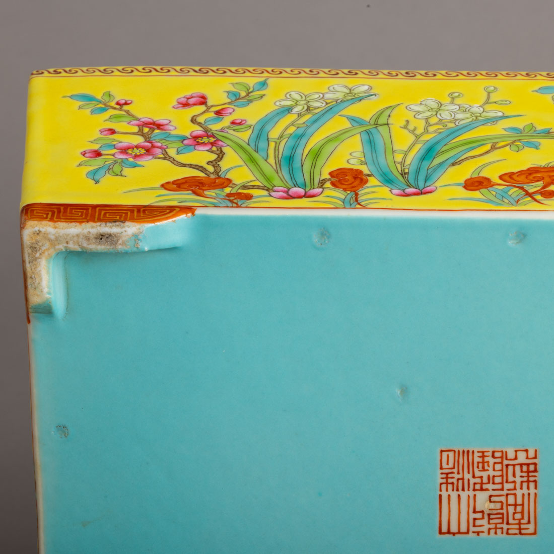 Em porcelana da China, decoração policromada e dourada "flores". Marcada. Sinais de uso.