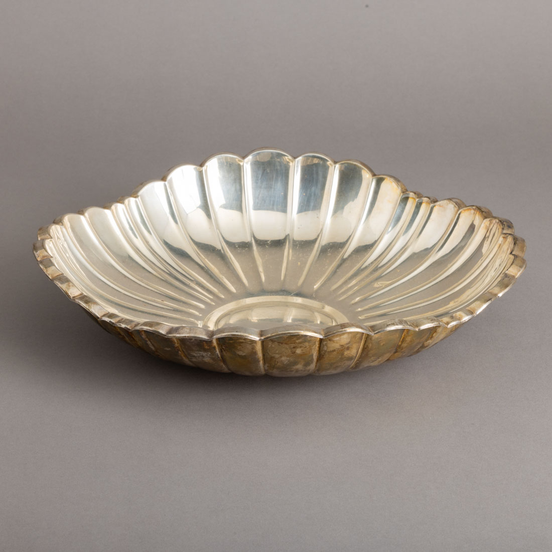 Em prata espanhola de 915 marcas de garantia de teor (pós 1934), decoração relevada e gomada. Leves amolgadelas.