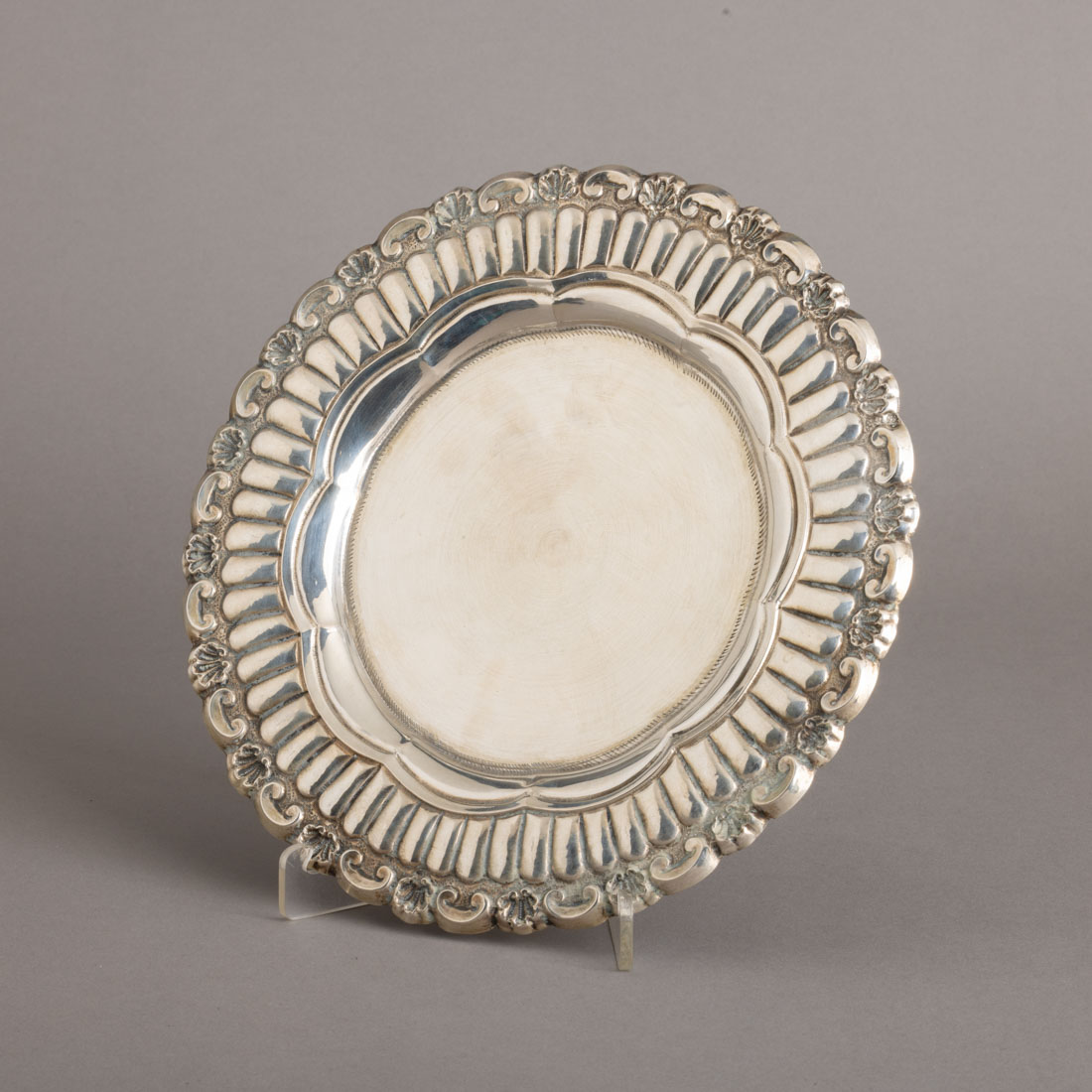 Em prata portuguesa contraste águia (1938-1984) de 833, aba gomada decorada com enrolamentos e concheados. Sinais de uso.
