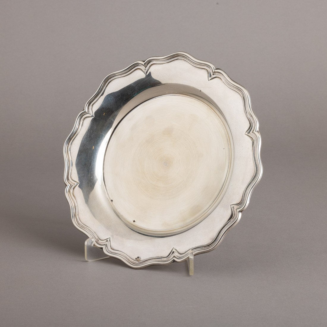 Em prata portuguesa contraste águia (pós 1985) de 925, decoração lisa, bordo relevado. Sinais de uso.