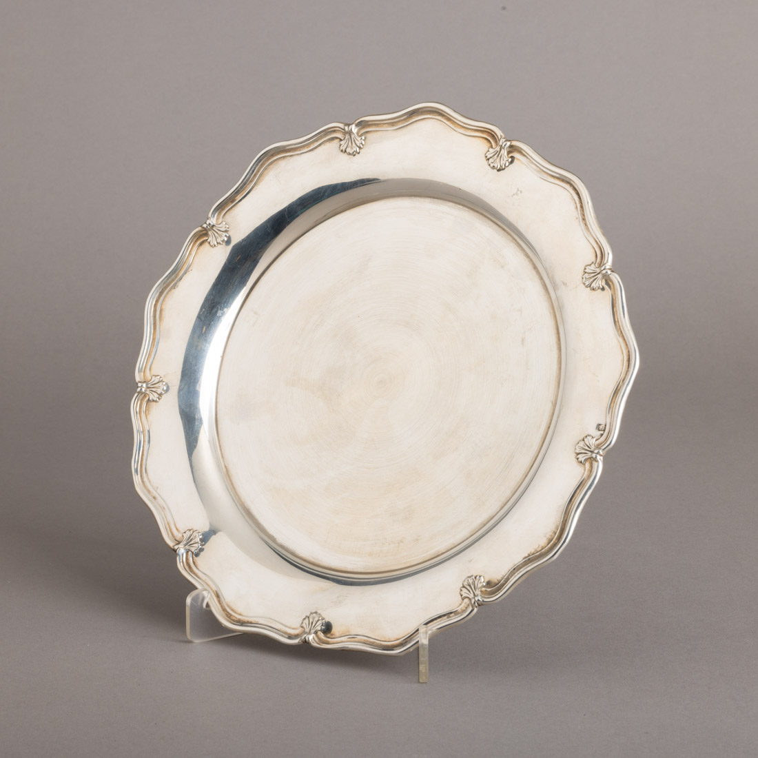 Em prata portuguesa contraste águia (pós 1985) de 835, bordo relevado decorado com volutas. Sinais de uso, pequeno defeitos.