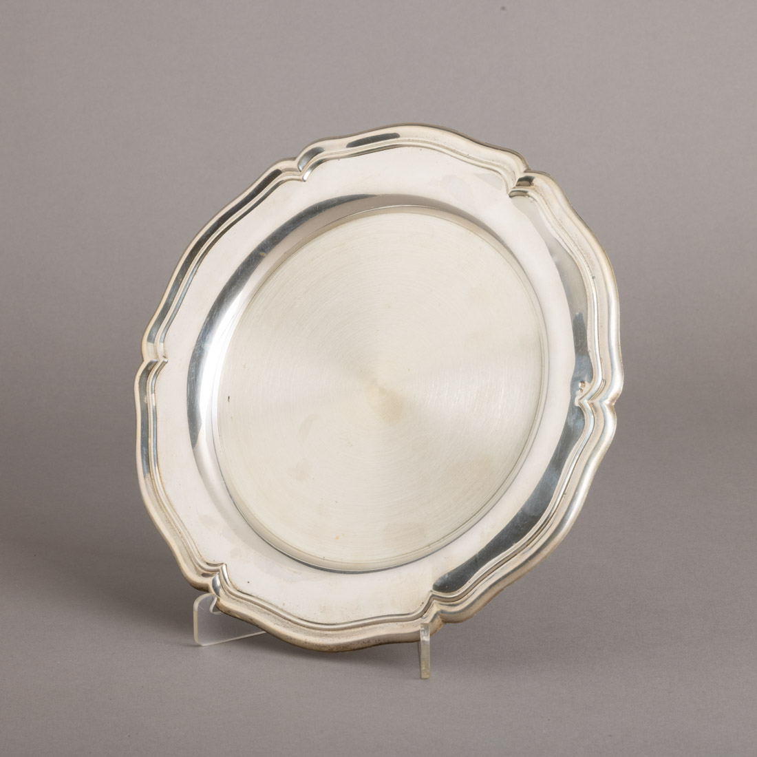 Em prata portuguesa contraste águia (pós 1985) de 925, decoração lisa, bordo relevado. Sinais de uso.