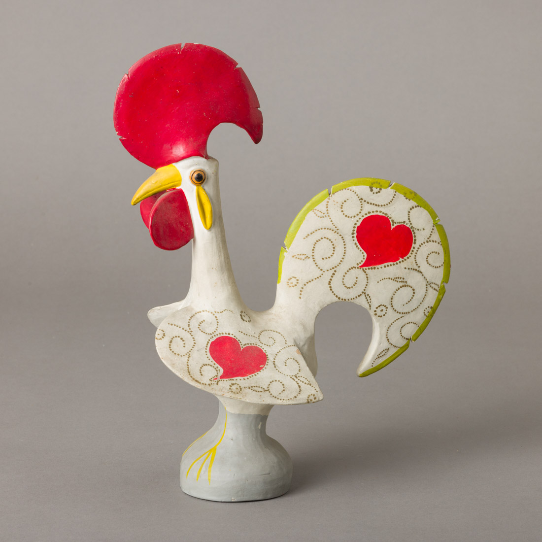 Escultura em barro, decoração policromada. Sinais de uso, ínfimas esbeiçadelas e leve desgaste na pintura.