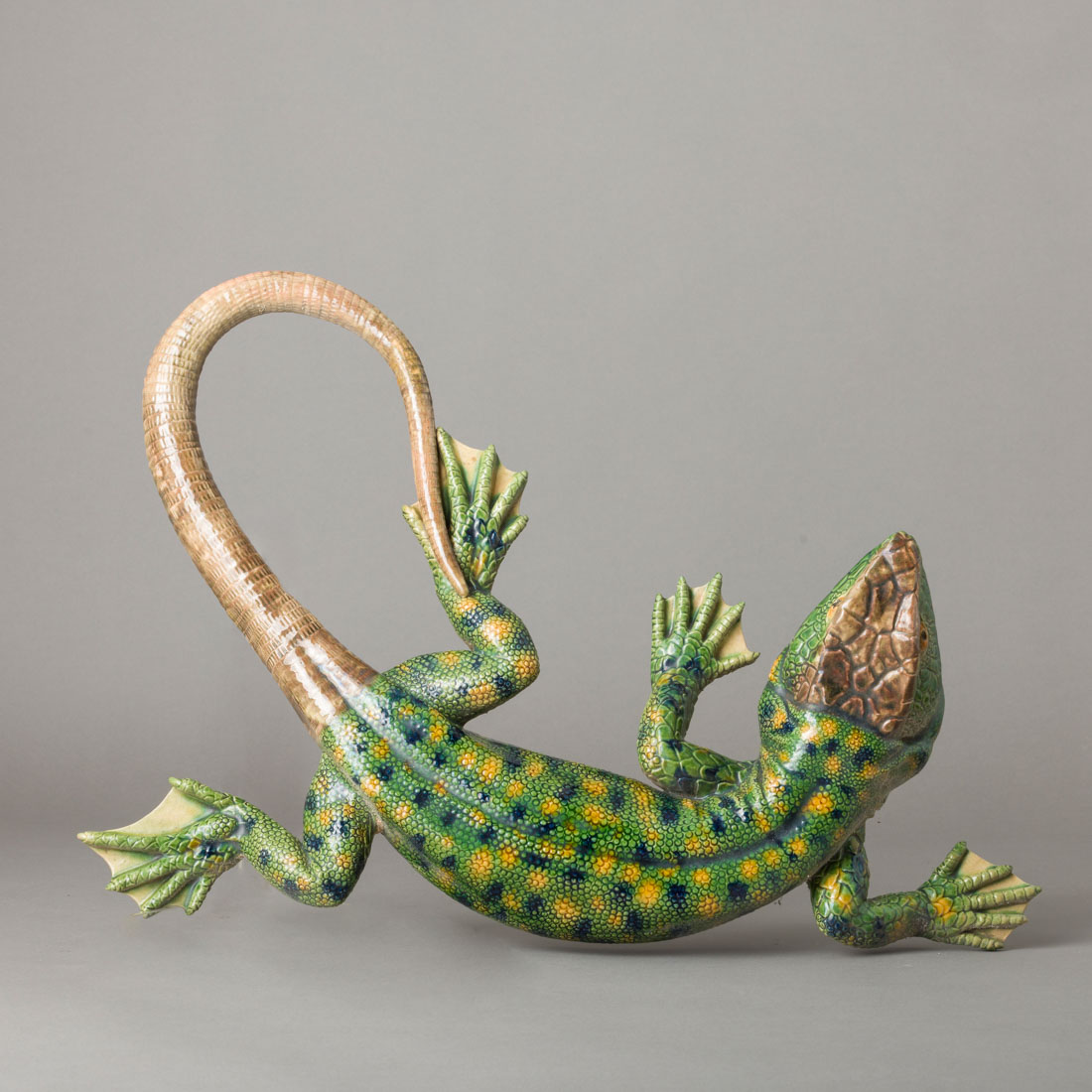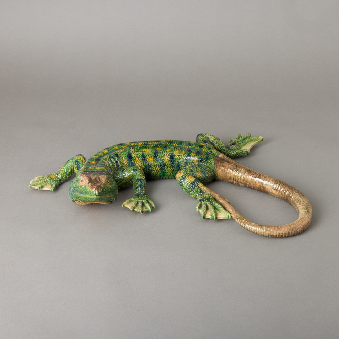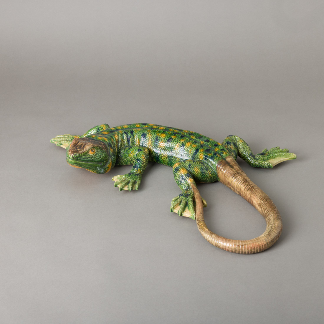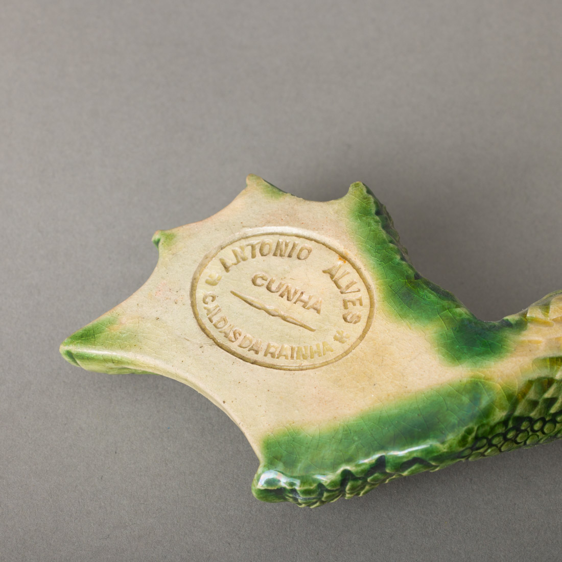 Escultura em cerâmica vidrada das Caldas, decoração naturalista, marcada António Alves Cunha - Caldas da Rainha, Séc. XIX/XX. Sinais de uso.