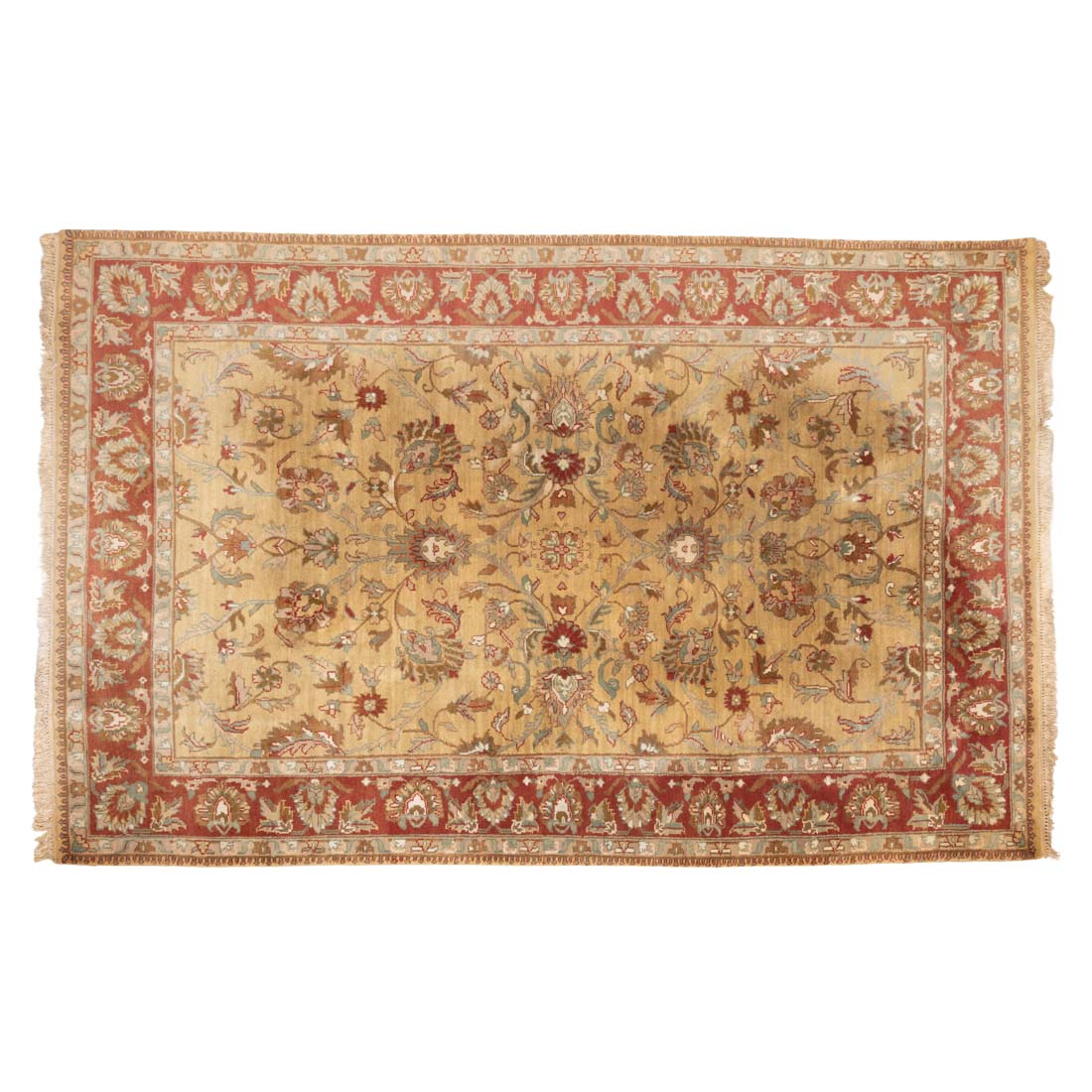 Em lã, decoração policromada com elementos geométricos. Sinais de uso e pequenos defeitos.