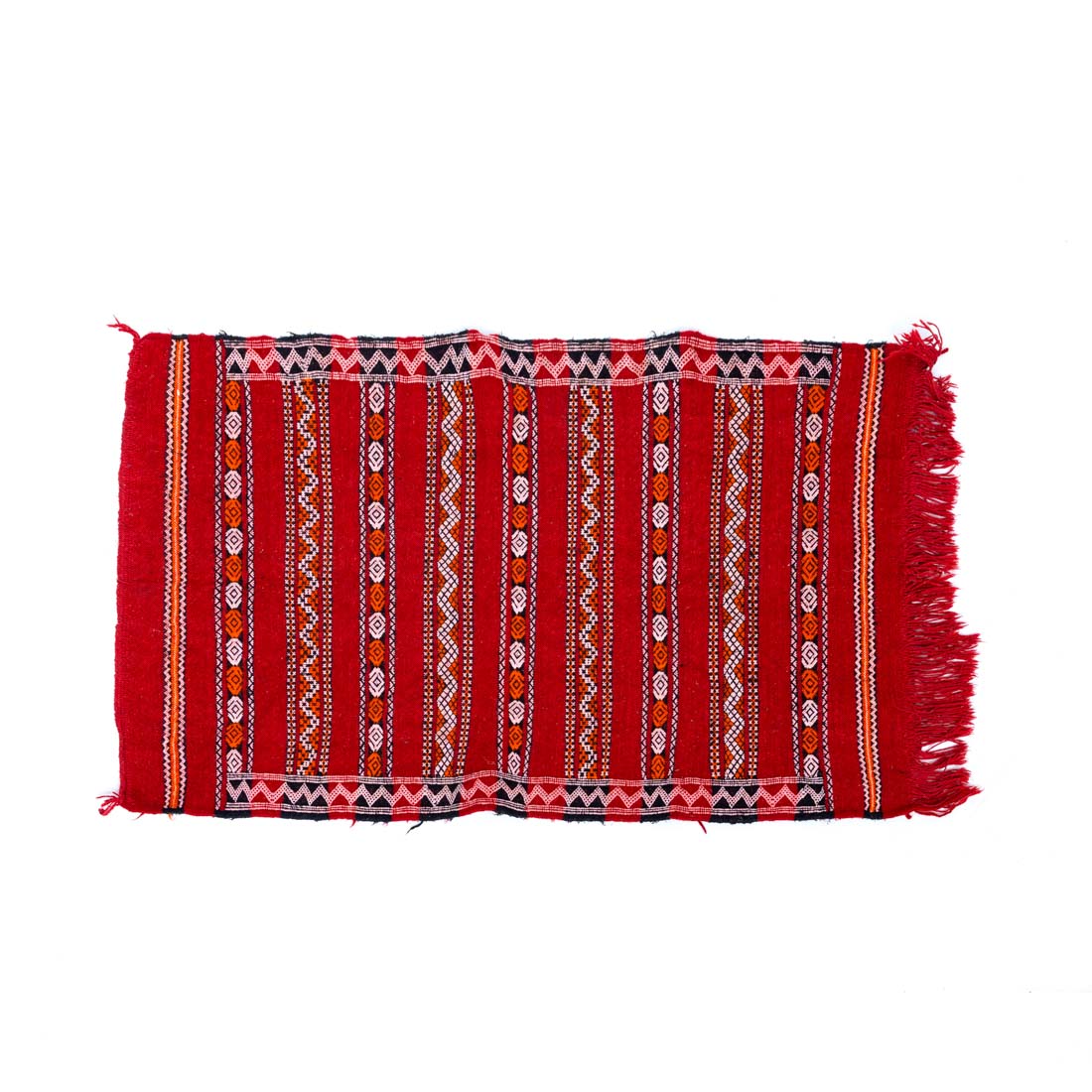 Em lã, decoração policromada com elementos geométricos. Sinais de uso.