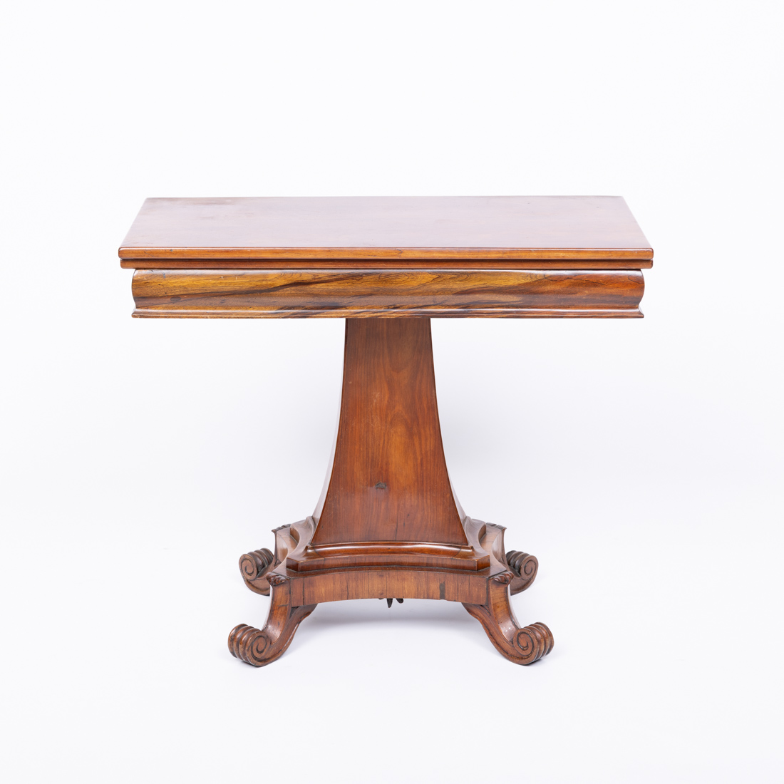 Em mogno e outras madeiras, coluna piramidal e pés curvos. Sinais de uso e pequenos defeitos.