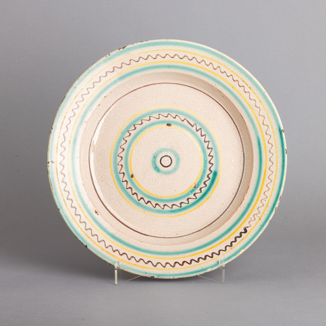 Em faiança portuguesa, decoração policromada. Séc. XIX/XX. Leve desgaste no vidrado, craquelé e pequenas esbeiçadelas.
