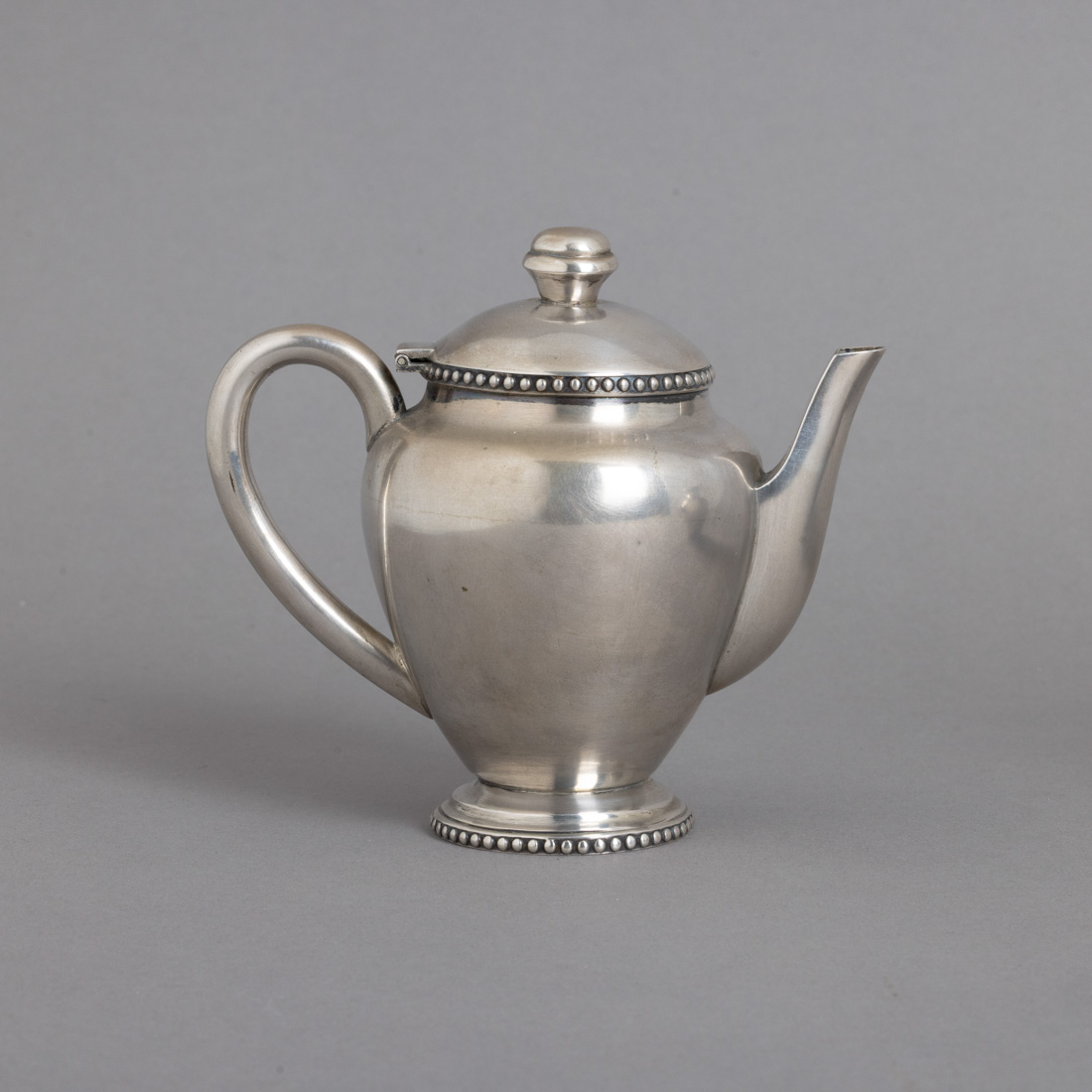 Em prata portuguesa contraste águia (1938-1984) de 833, decoração lisa com frisos de perlados. Sinais de uso.