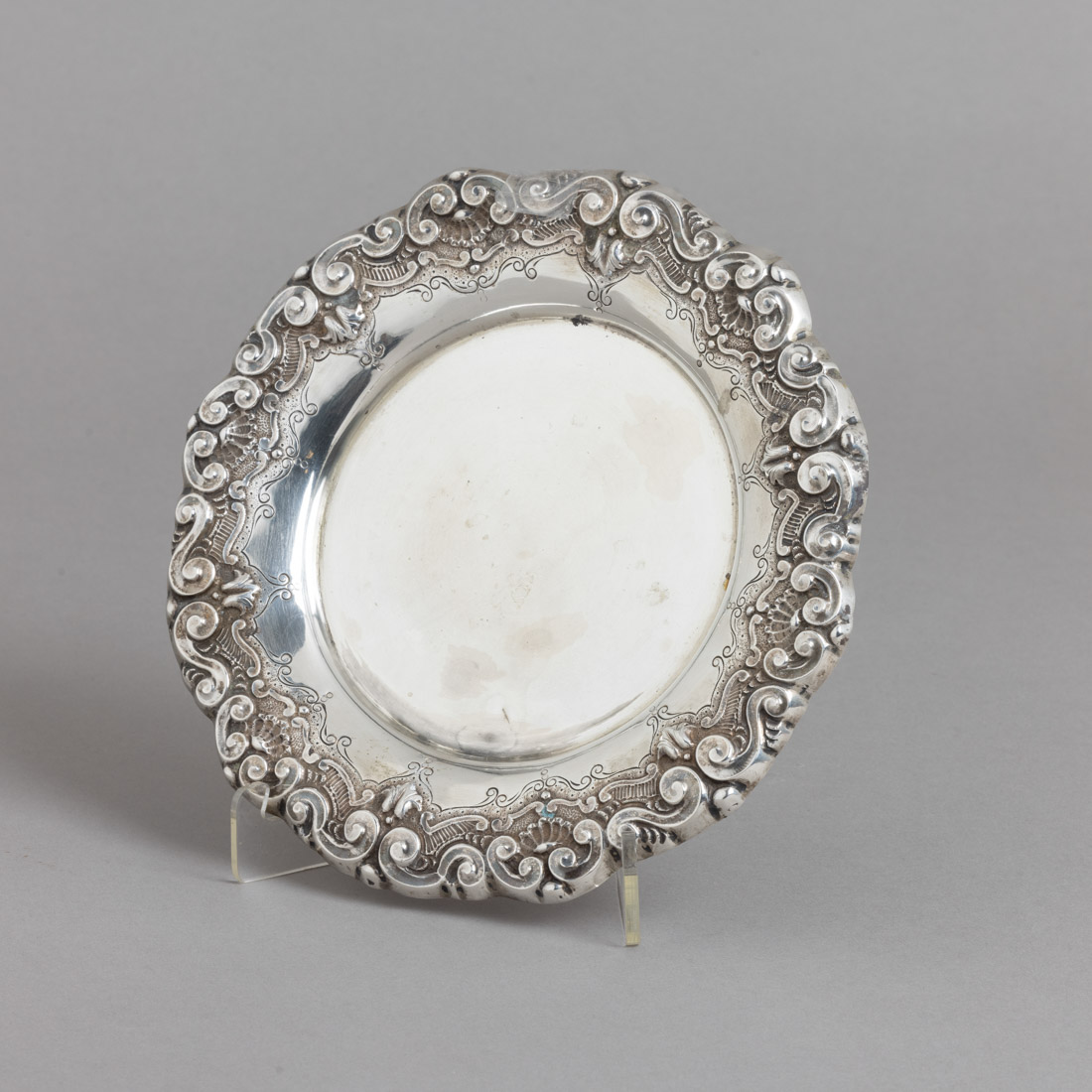 Em prata portuguesa contraste águia (1938-1984) de 833, aba relevada e gravada decorada "enrolamentos e elementos vegetalistas. Sinais de uso, pequena amolgadela e leves pontos de oxidação.